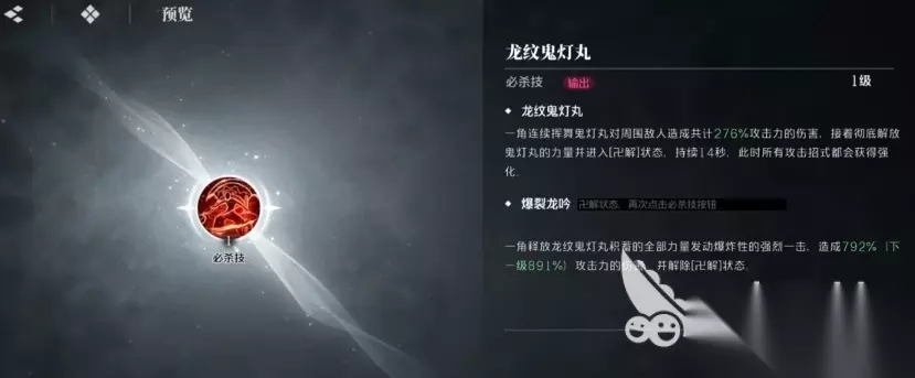 这种创痕如同给敌人贴上了一个标签,也为后续的攻击做好的基础,而每次成功击败敌人,斑目一角都会累积25点灵压,并随之进入激昂状态,此时其造成的突袭伤害将得到显著提升,特别是在万解状态下,每释放一次普攻分支,都会为下一次的爆裂龙吟提供宝贵的暴击伤害加成,进一步放大了他的输出爆发力,相比其他的技能而言,这个技能其实相当于是一个基础技能,主要他想要靠创痕来累计输出的话,这个技能就要前期多次释放,才可以累计起来后期的强大输出数值。