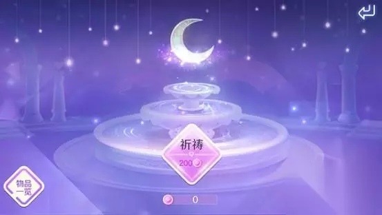 QQ炫舞手游玩家进入姻缘树后,就可以看到月亮井这个功能,点击进入后可以进行祈愿。玩家可以点击左下角的物品一览,查看祈愿可以获得的道具奖励,另外祈愿需要消耗200点心动值。