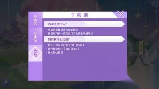 月亮井祈祷消耗的心动值,只有情侣之间才可以获得,心动值是情侣之间爱意的标志。情侣之间每日一起完成前5场对局、前3次使用情侣动作、送礼物给对方才可以获得心动值。心动值每日获取的上限有限,对于情侣来说还是非常重要的,非情侣玩家无法获得心动值点数。