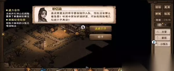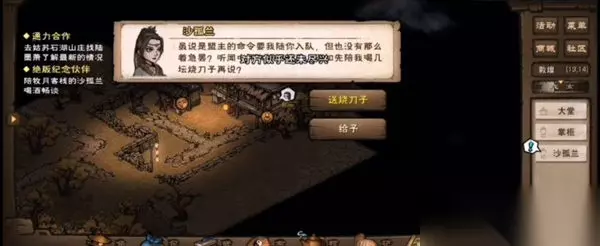 3、和沙孤兰对话,给她送烧刀子。