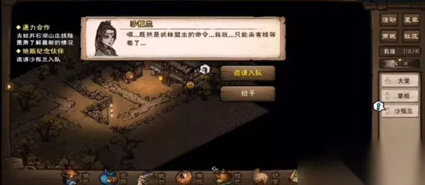 2、来到牧月客栈(13,14),找到沙孤兰邀请入队。