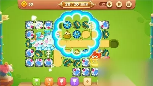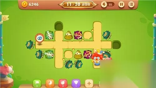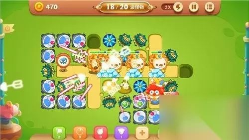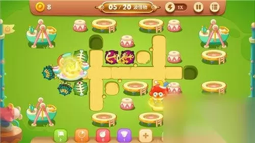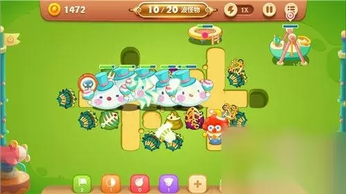 短小的行进路段,让阿波面临消灭怪兽和清理障碍物的双重选择。首先,阿波在路段的中部建设2-3座便便炮塔,从而极大的缓解怪兽的攻势压力;其次,阿波增加4-6座多重箭炮塔,从而让阿波在灭怪兽的同时能兼顾地图远端的障碍物清理。最后,在第10波的关键时刻,小丑还能释放自己的【缤纷彩球】技能来救场哟!