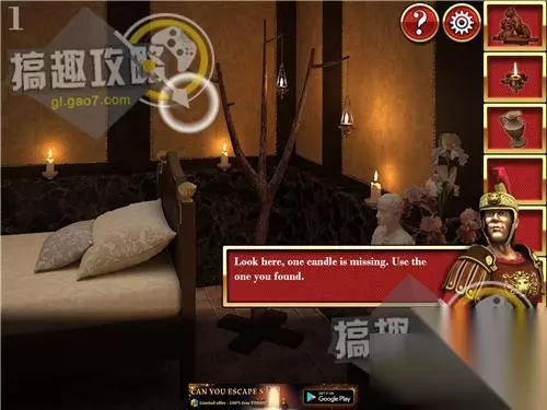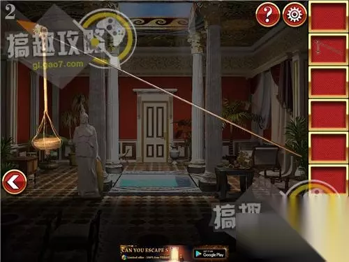 密室逃脱逃出神秘宫殿10攻略,下面就为大家详细讲解密室逃脱逃出神秘宫殿10全关卡图文攻略,希望这篇通关攻略对有在玩这款游戏的小伙伴们有所帮助。 游戏简介:《密室逃脱逃出神秘宫殿10》这是一款密室逃脱解密游戏,它将把你带回到辉煌的罗马帝国时代!你的任务并不是研究勘探这些奇怪的古代场景,而是逃离它们!证明你的能力,在各种符号代码以及密码的包围之下,发挥眼力与强大的逻辑分析能力,解决这些难题!你能逃脱吗? 密室逃脱逃出神秘宫殿10第1关攻略: