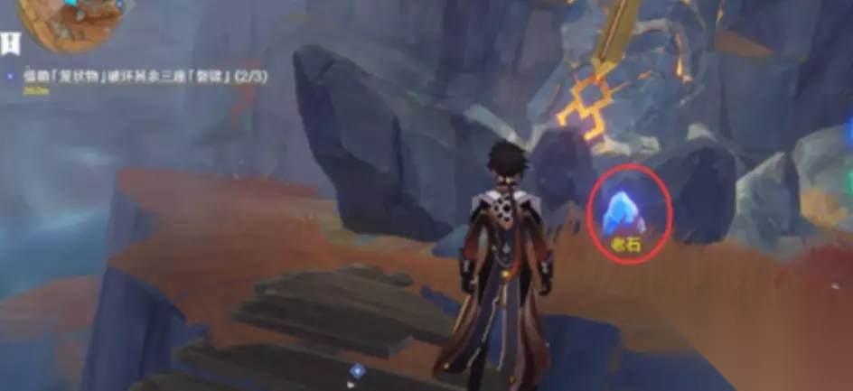 5:琉璃峰一路朝着左边走,路上基本隔着几步就有一堆丘丘人,在倒数第二堆那里有一块老石。