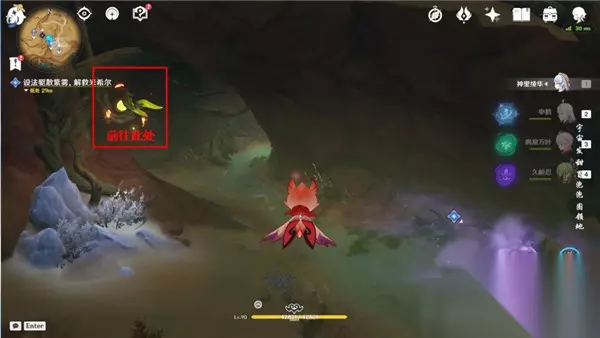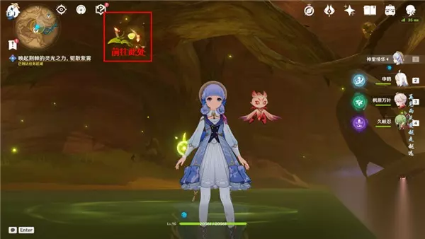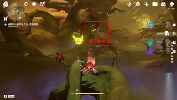 <7>继续跟随浮光前进,设法驱散紫雾,解救米希尔(首先我们变回斯露莎形态,到达下方图中位置交互,击败出现的怪物即可)
