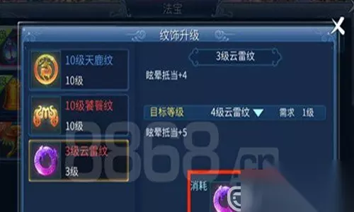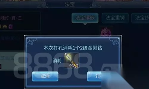 纹饰打孔,还有一个前提,首先这个纹饰必须是法宝级别的纹饰,只有法宝纹饰才能够打孔,除此之外的纹饰是不能够打孔的。其次,就算是法宝纹饰打孔,也是有限制和讲究的。法宝纹饰打孔,必须得要求是蓝色,红色,仙家,这三种纹饰才能打孔,这三种法宝纹饰在每个部位最多可以打三个孔。而在这里需要注意的是,乾坤部位的纹饰是不可以打孔的。