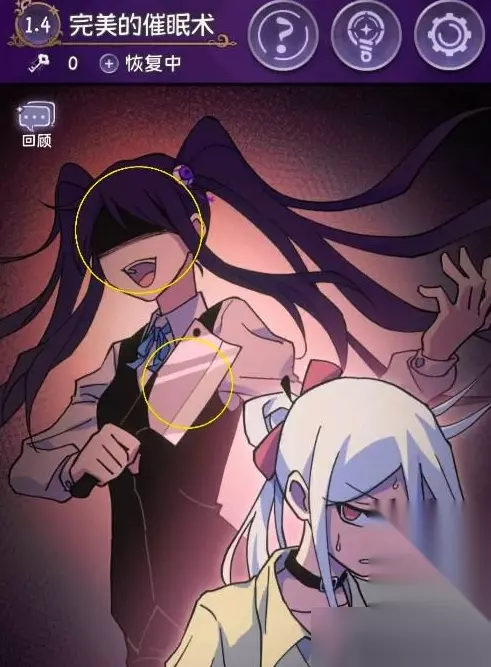 4.区域A添加碎片【完美小姐】【星辰大海】,区域B添加碎片【完美小姐】【餐刀】。 5.通关真相结局【梦想】。 6.区域A添加碎片【完美小姐】【章鱼触手】,区域B添加碎片【晶状体x6】【奇怪的眼泪】。 7.通关隐藏结局1【旧日恐惧】。 8.区域A添加碎片【完美小姐】【矿泉水】,区域B添加碎片【酒心巧克力】【客机模型】。 9.通关隐藏结局2【含泪自拍】。 四.完美小姐她又没猜到结局1.4完美的催眠术: 1.点击以下黄色区域获取故事碎片,红色区域发现隐藏怪异之手。 2.获取故事碎片。 3.合成故事碎片通关结局。