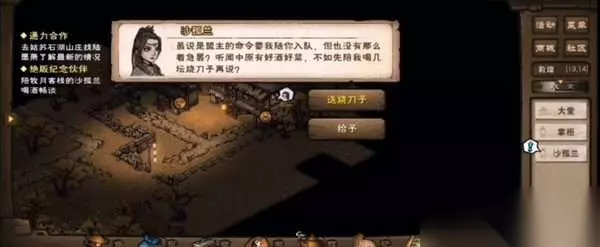 3、和沙孤兰对话,给她送烧刀子。