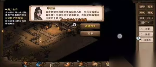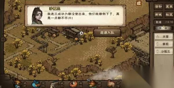 2、来到牧月客栈(13,14),找到沙孤兰邀请入队。