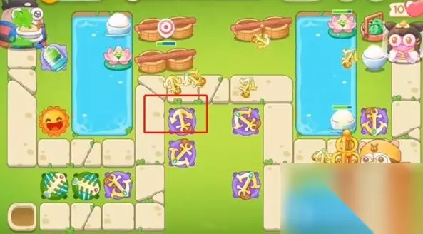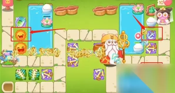 6、第六波右上角增加一个船锚,有金币升满级,中间增加一个船锚升一级,打上面障碍物,左侧加一个鱼骨头。