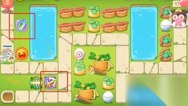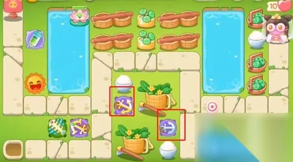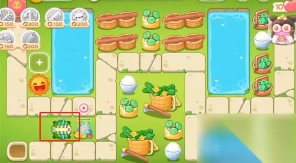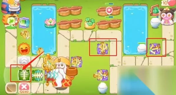 通关步骤 1、开始的时候左侧太阳花直接满级清理周围障碍物,第一波左侧下方建立一个鱼骨头,升一级把右侧钱袋打掉。