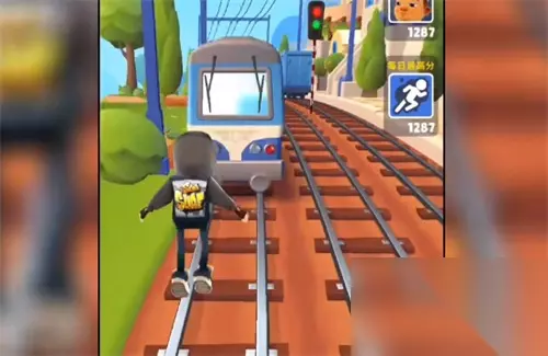 2、当到遇到地铁后,快要撞上去的时候,快速点击暂停,然后重新进入游戏。