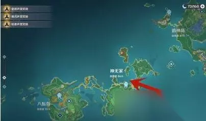 原神奇异的海螺位置: 1、先进入游戏,打开地图,原神奇异的海螺在神无冢的海滩 。
