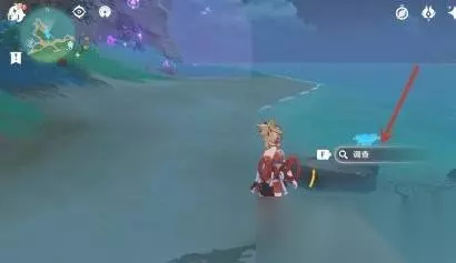 2、到达海滩后,寻找海滩的亮光,点击调查 。