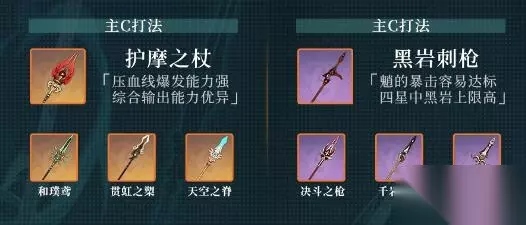 原神魈武器搭配推荐 武器:护摩之杖、黑岩刺枪、天空之脊、白缨枪 解析: 1、护摩之杖和黑岩刺枪当主C的时候推荐的武器,主要是综合输出能力比较好;