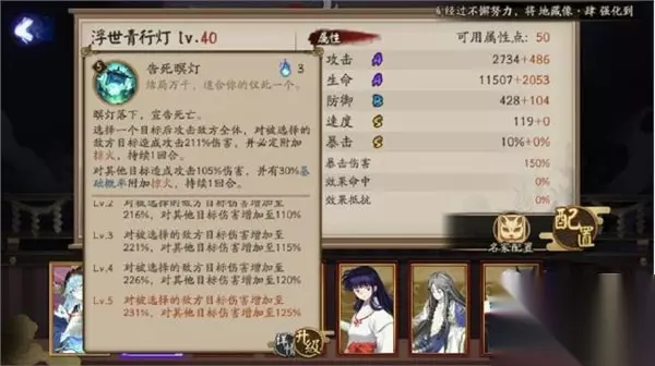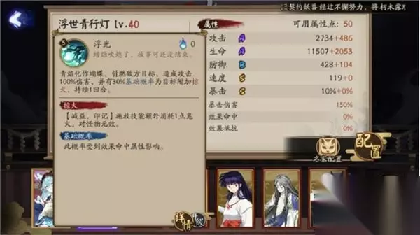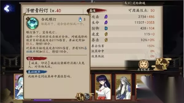 阴阳师浮世青行灯技能怎么样 属性面板 攻击:A、生命:A、防御:B、速度:S、暴击:S