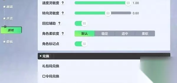 2、在设置页面【游戏】一览的下方可以看到兑换选项,分为礼包码兑换和口令码兑换两种。