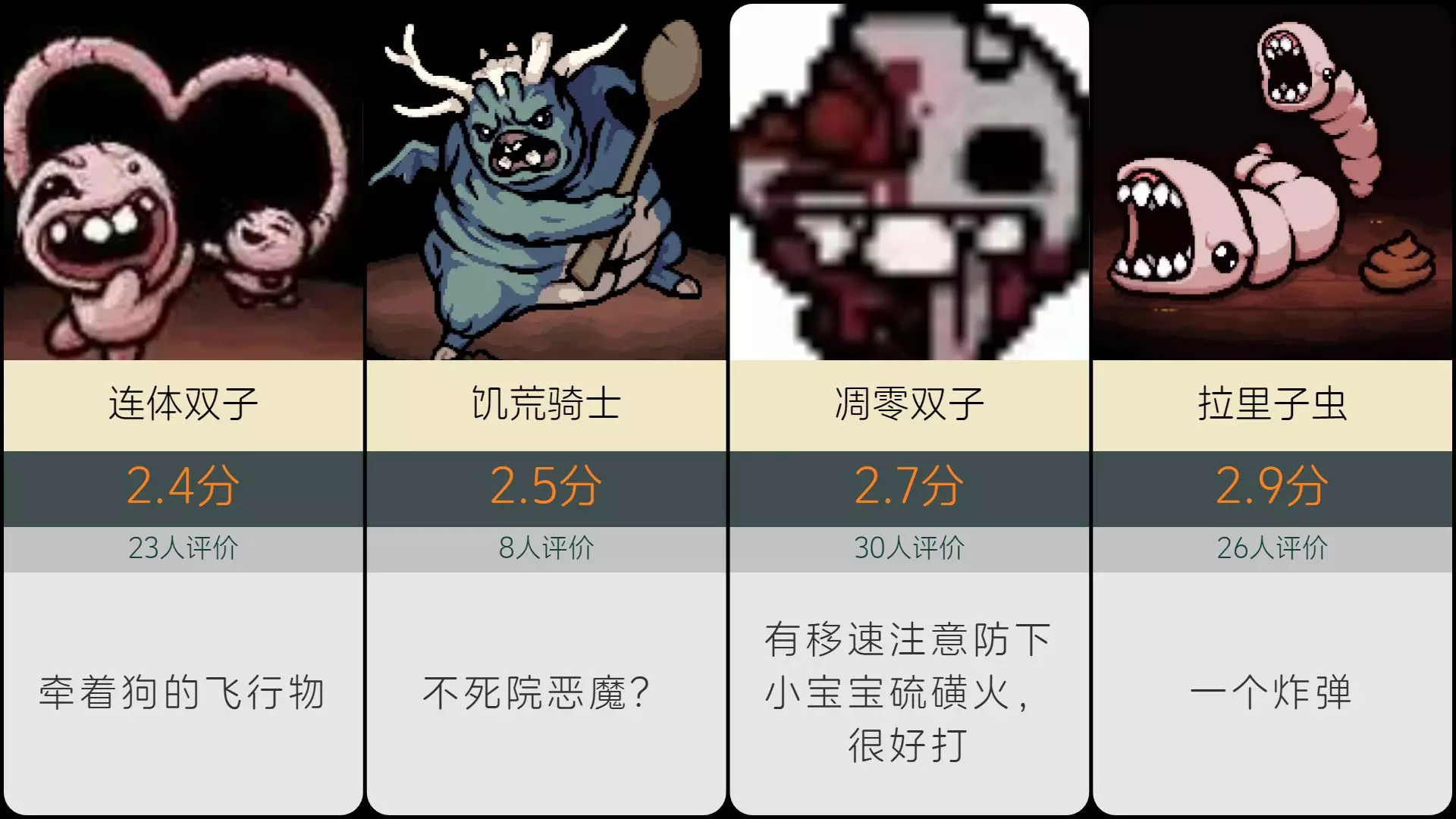 【虎扑】以撒的结合BOSS难度评分排名!