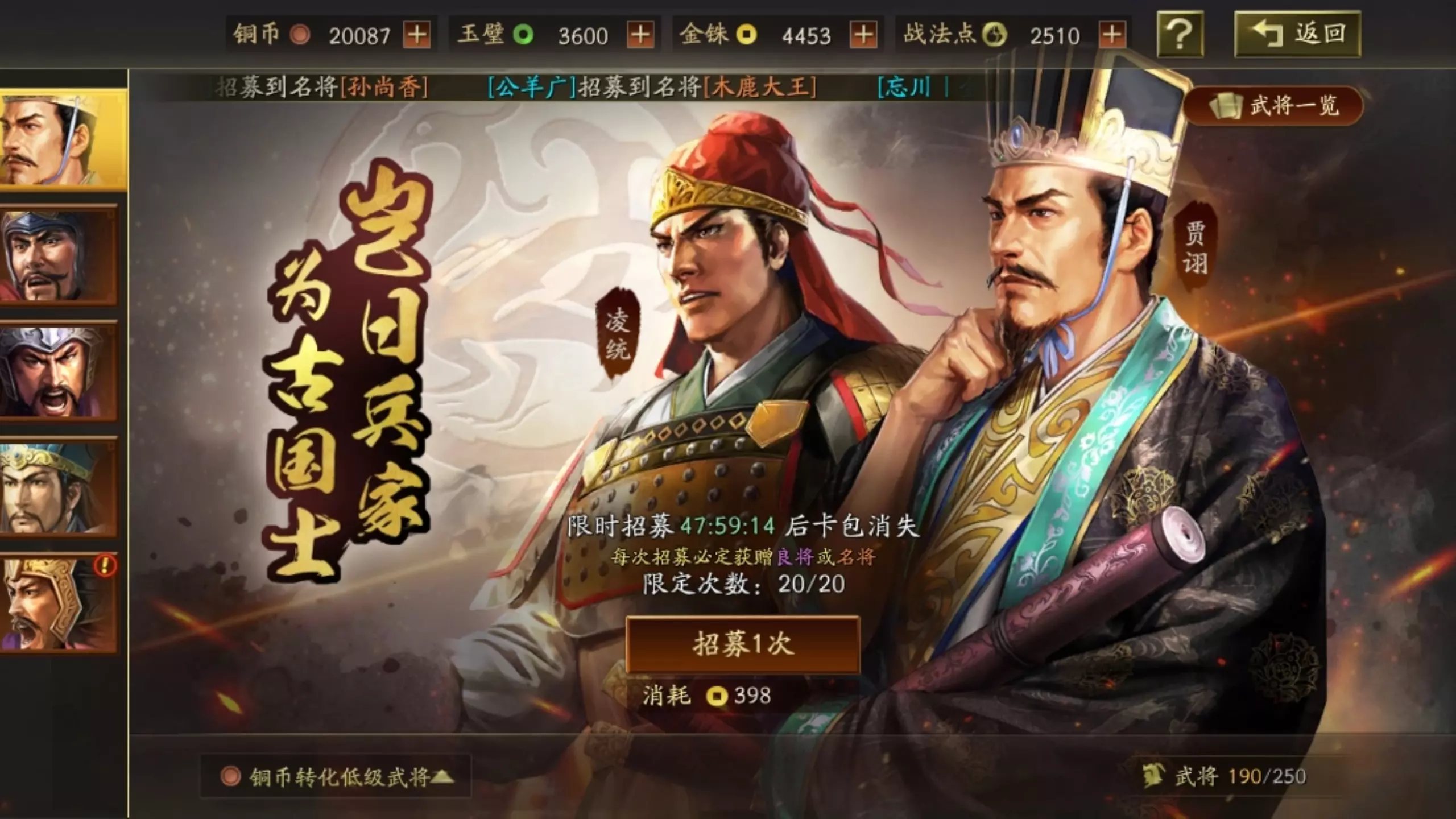 基本不用想霸业出新诸葛亮,直接名将抽姜维选诸葛就行了