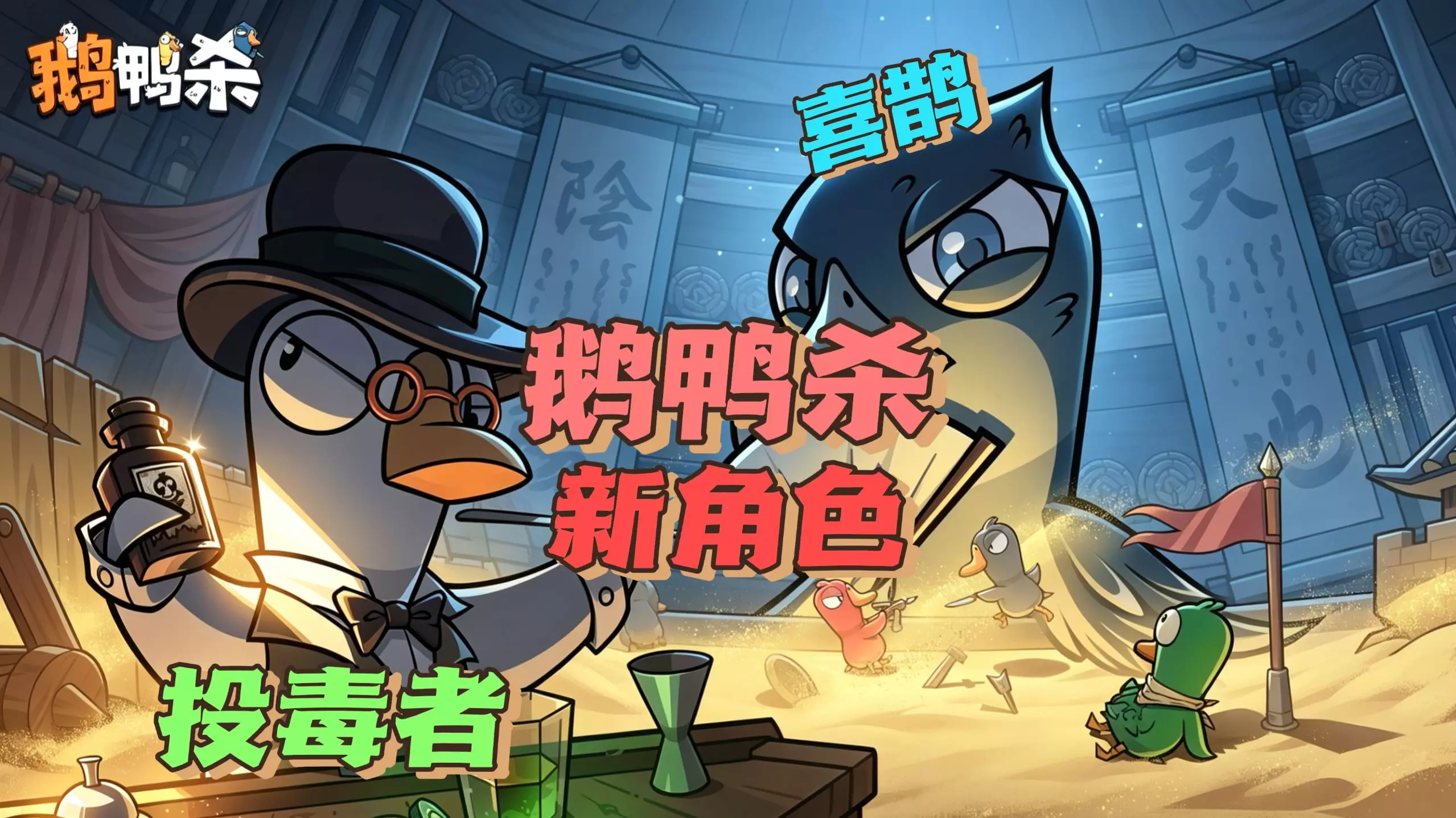 鹅鸭杀两大新角色正式上线!中立娱乐博弈位喜鹊;鸭子阵营新暗杀位投毒者。本期完整讲解技能规则、隐藏机制、克制关系与实战玩法,新手也能快速上手,轻松掌握新角色强势打…