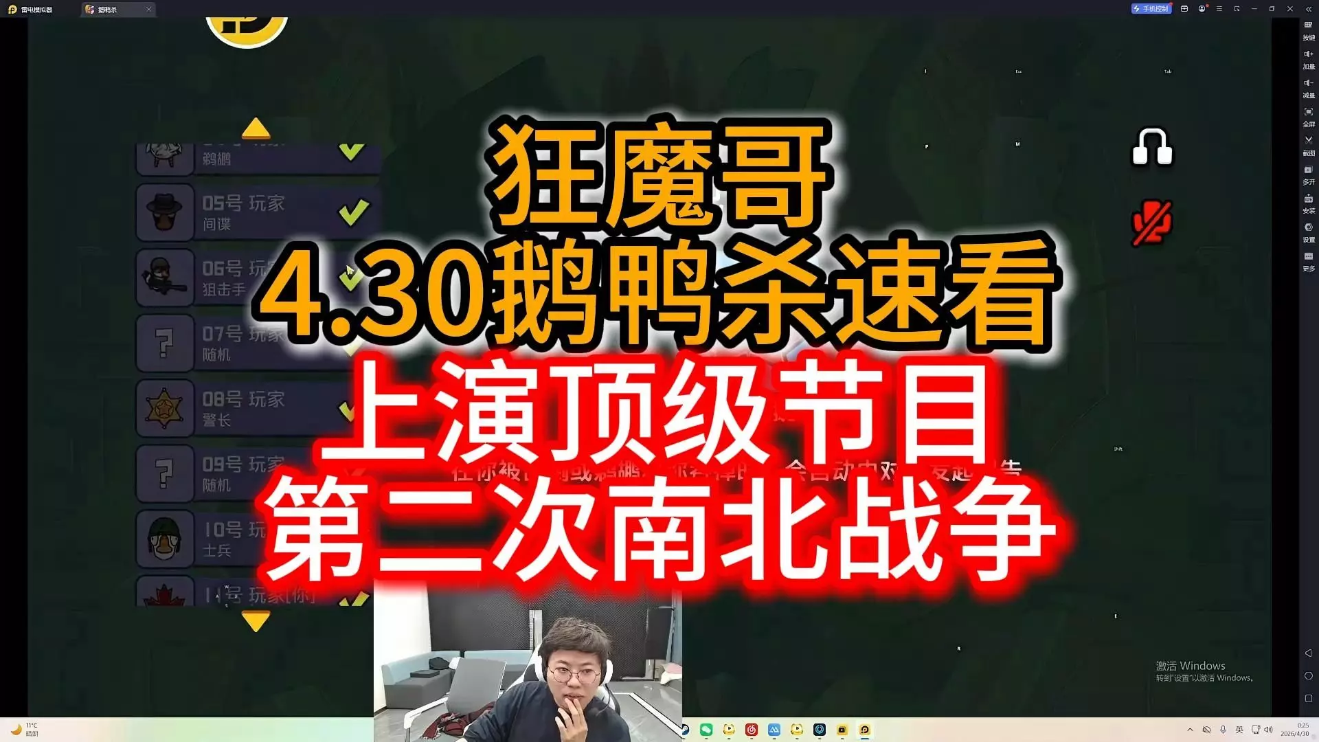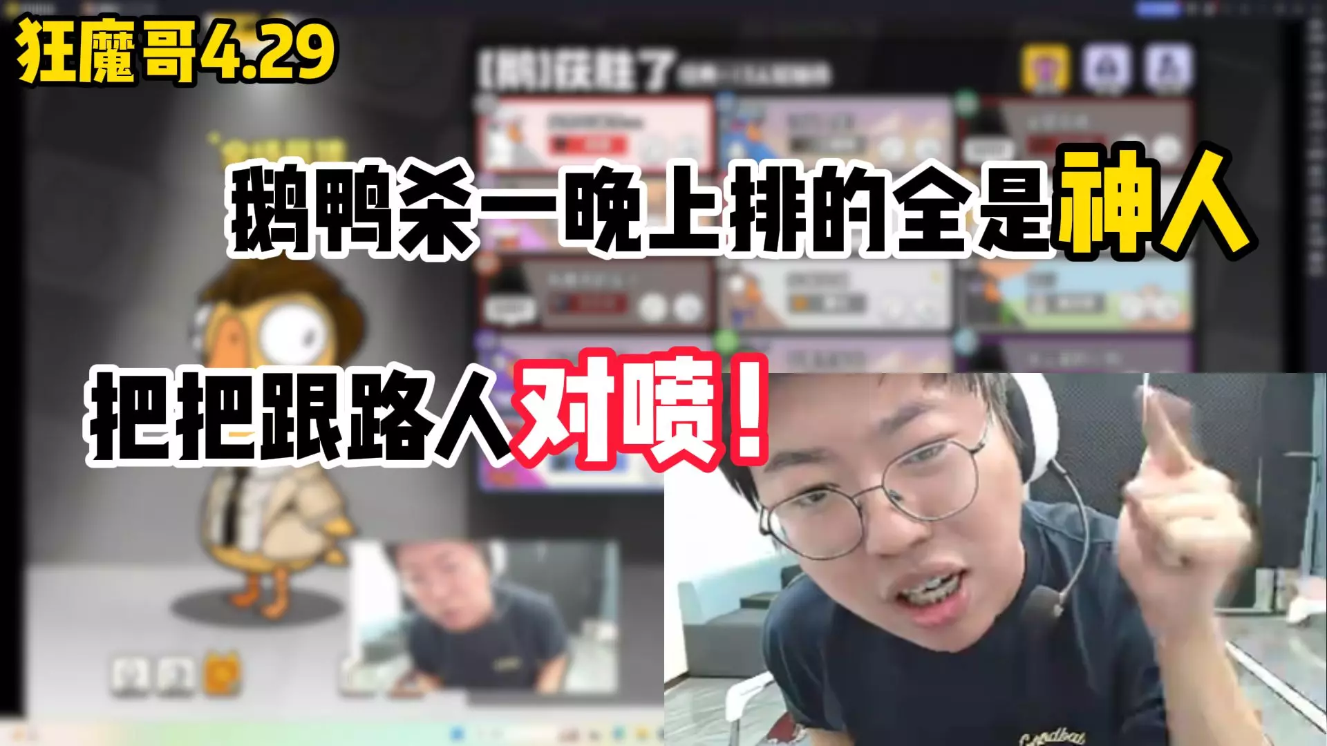 【狂魔哥】4.29鹅鸭杀,一晚上排的全是神人,把把跟路人对喷!