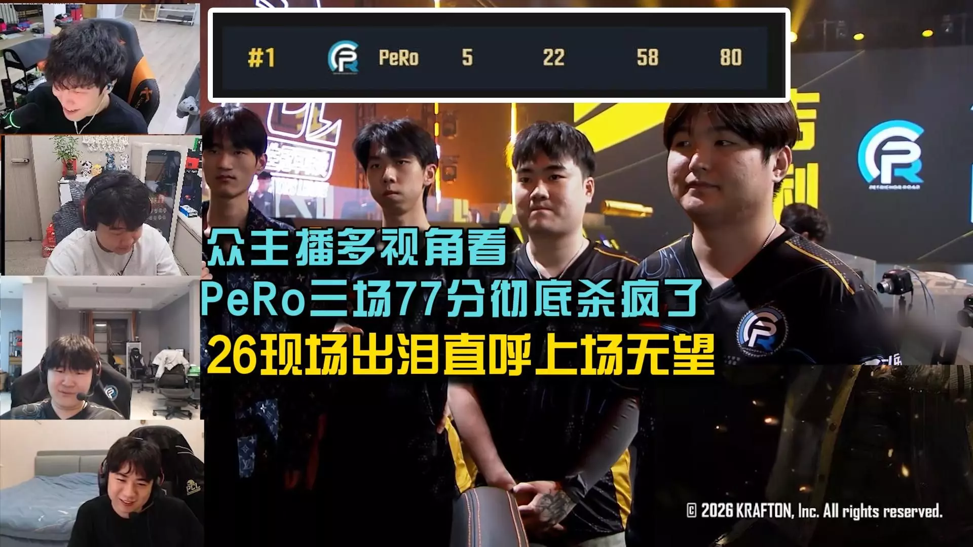 PCL春季赛S组第一日第五局艾伦格赛事中,PeRo战队以24杀的成绩成功吃鸡,队员Cui71拿下十杀,再次进入十杀俱乐部,众主播见证了这场精彩赛事。