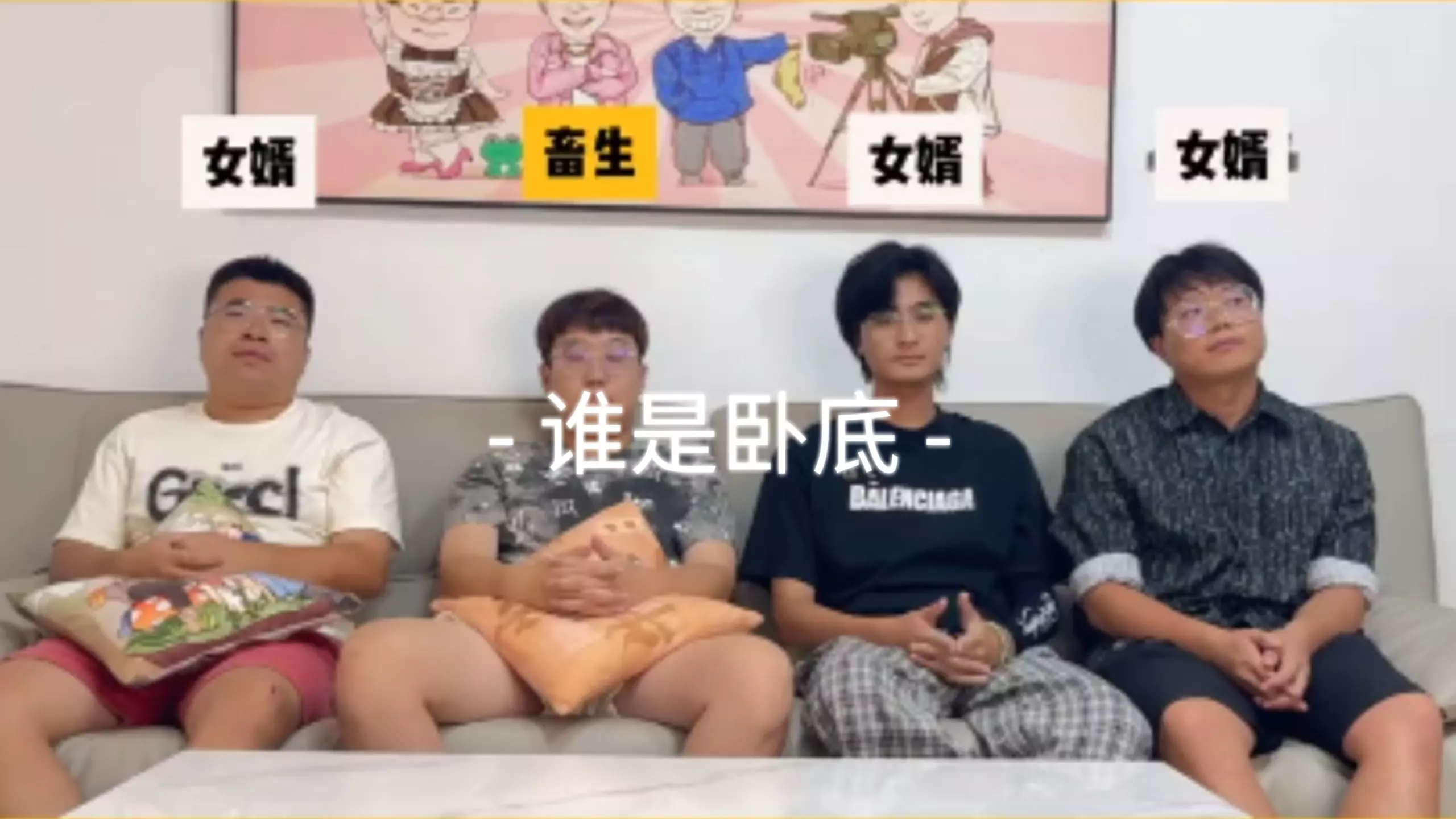这是牛小豪吖的谁是卧底影视剪辑,画面里四人开展谁是卧底游戏,三人词为遗照,一人词为婚纱照,过程趣味十足,展现了游戏的欢乐氛围。