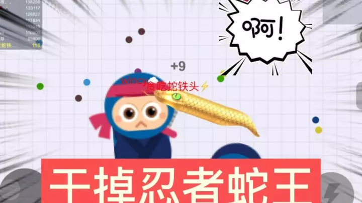 这是《贪吃蛇大作战》的游戏内容,展示了玩家操控红色贪吃蛇,开局秒杀忍者蛇王,还盘杀美人鱼蛇王的精彩对战过程,过程中能看到击杀后获得奖励、排名上升的游戏反馈。