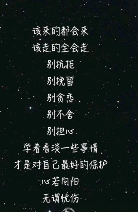 该来的都会来,该走的全会走,别抗拒,别挽留,别贪恋,别不舍,别担心,学着看淡一些事情,才是对自己最好的保护,心若向阳,无谓忧伤。