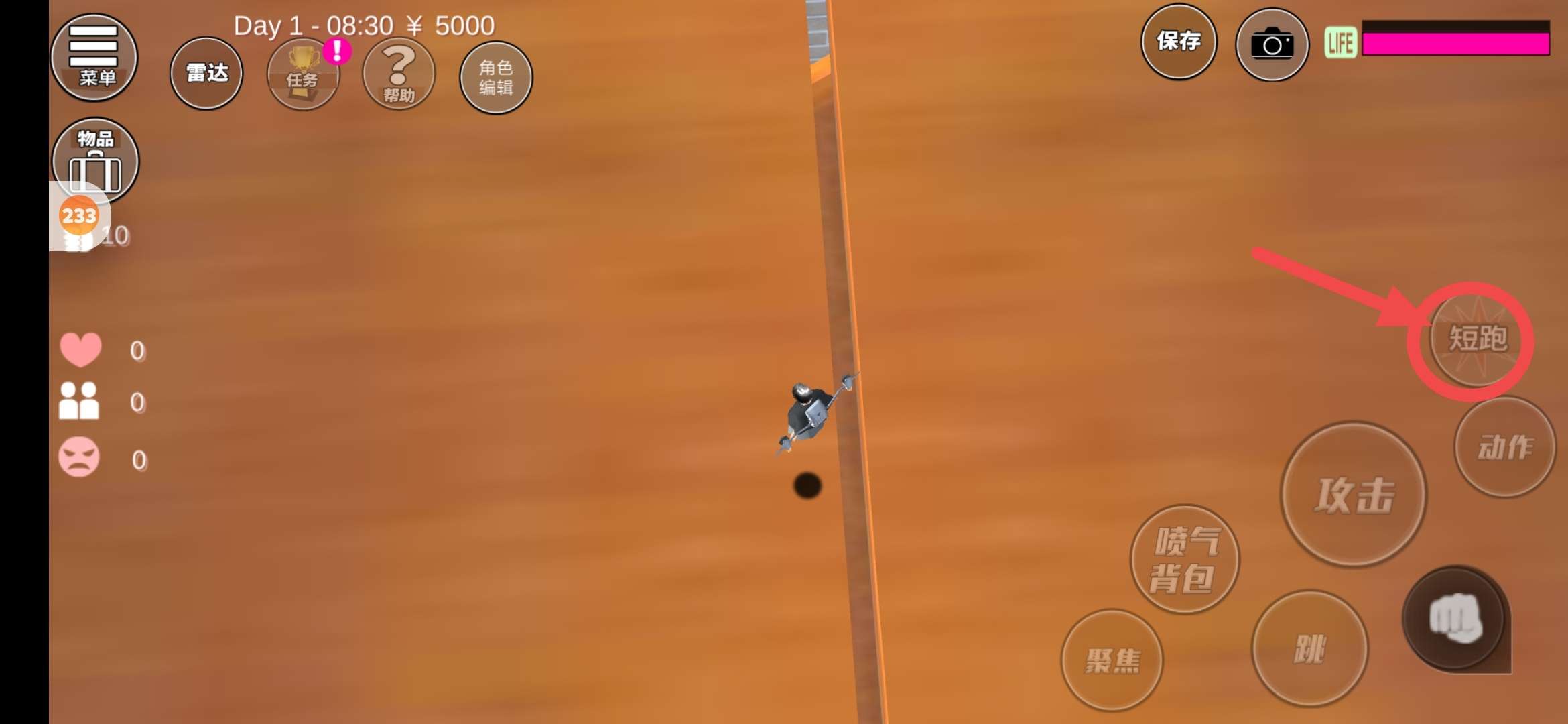 找到地下室入口,利用喷气背包,往入口缝隙使用短跑,我们就能喷进去了啦