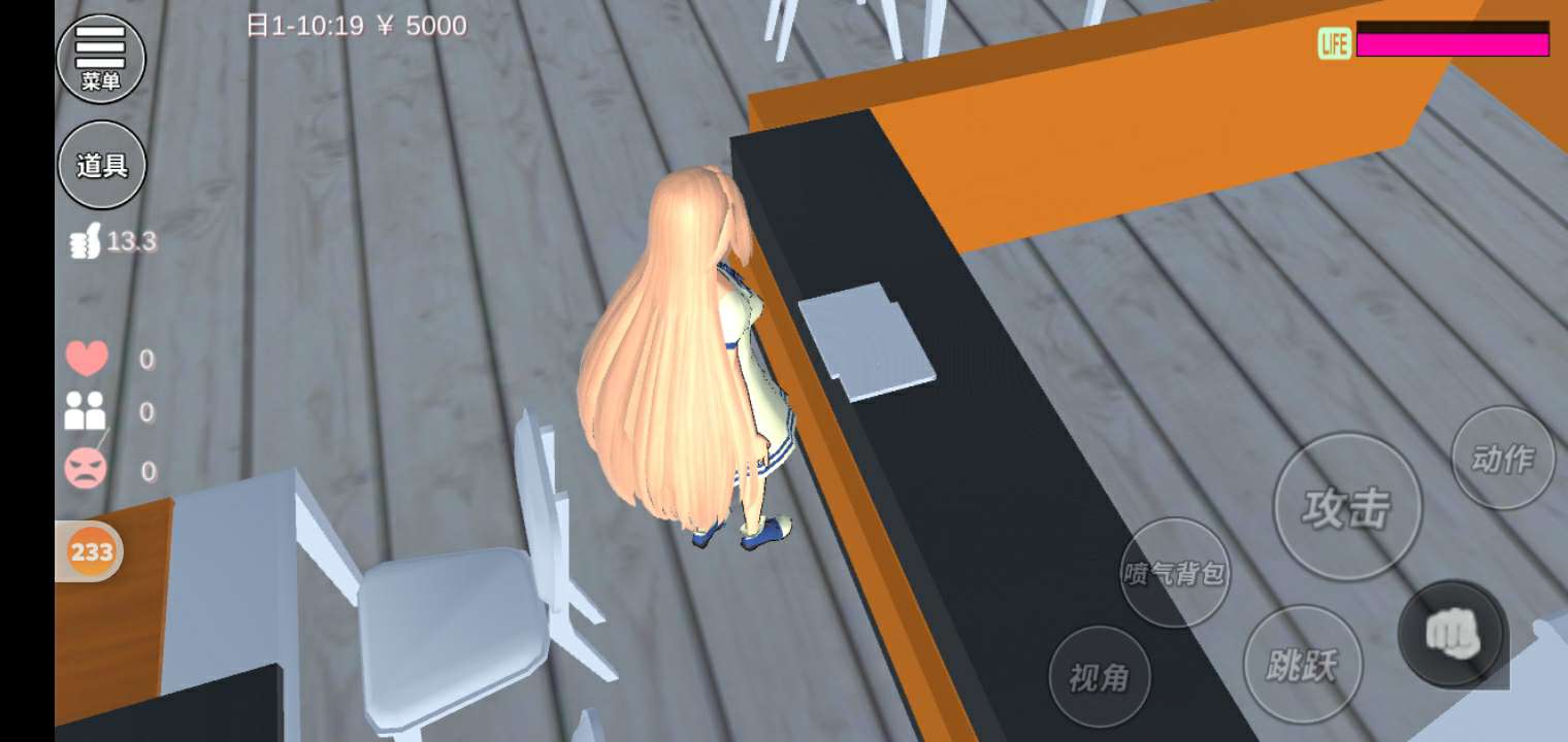 这里就有几个餐桌椅,做的有点简陋。