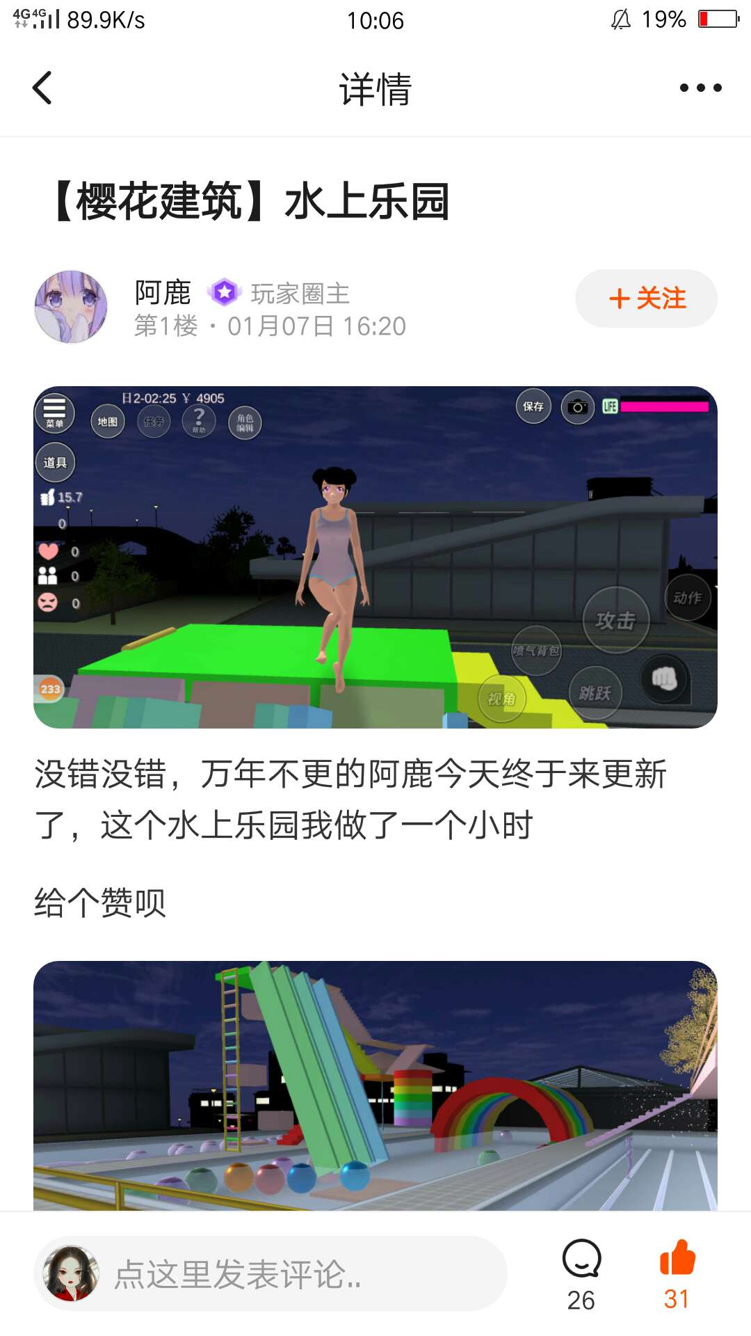 哇!阿鹿同学的水上乐园让我想起夏天了呢!虽然夏天热热的但是冰冰凉凉的水果饮料让人很幸福呢!希望阿鹿同学可以继续努力,加油💪!