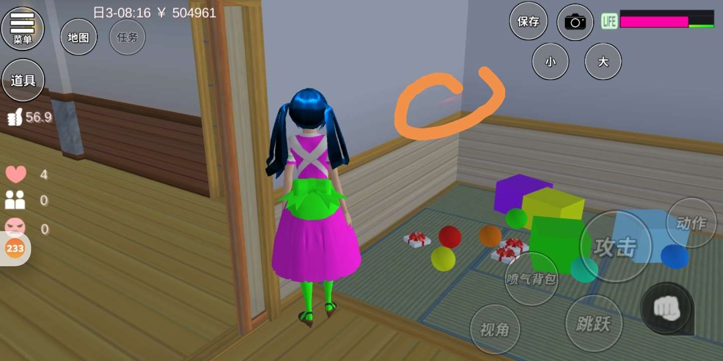 更新后,女主家墙上有红光