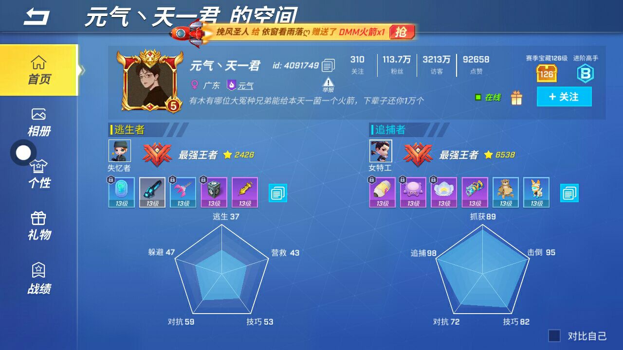 【相册无法上传图片问题已修复,仍旧黑屏的用户尝试多次关闭乐园重新进入】 *玩转街头系列,“发明家·疾风少年”套装特惠上线* *时空商城上架,次元律者套装等皮肤限时返场!* *SS16赛季“龙之星乐园”,大黄蜂联动版本现已开启!* *首位双形态追捕者“机械之心·奥博”,全新道具卡“噗噗蛋”登场* 8V2欢乐开黑竞技手游!求生!逃跑!躲猫猫!还能这么刺激?5分钟体验一场魔性搞笑的大乱斗,这把一定要逃出去呀! 【看!花里胡哨的道具】 菠萝捶人,大葱回血,滑板还能追跑车!各种脑洞大开的道具组合、奇葩刺激的对抗姿势等你来解锁。江湖上流传着一句话:“学物理,上逃跑,牛顿能被你气倒。” 【5分钟极速大乱斗】 5分钟能做什么?遇事不决玩逃跑!组队体验超刺激乱斗,真大神都能5分钟解决战斗、秀翻全场。少年快上车! 【各路人才在线恶搞】 大头萝莉、无情特工……有的角色看起来可可爱爱,打起人来谁都不爱。也有看起来一本正经,但总躲草丛阴你的大坏蛋!被打倒的猛男追捕,竟然靠“卖萌求饶”的表情包逃过一劫。