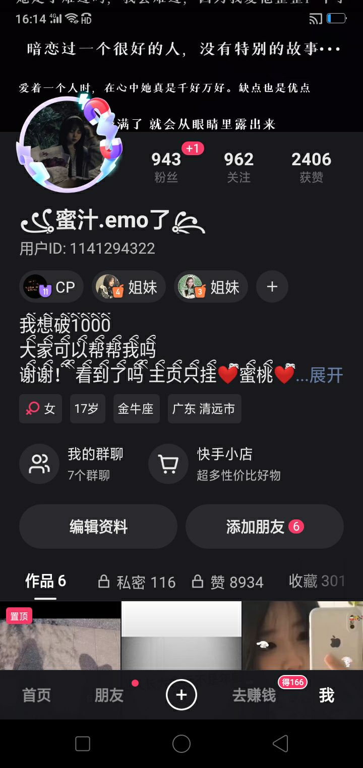 有人有快手吗?可以关注我这个渣渣吗
