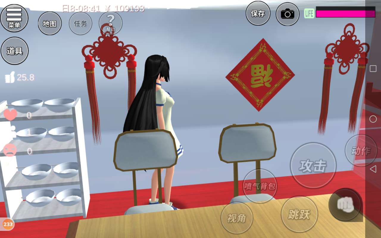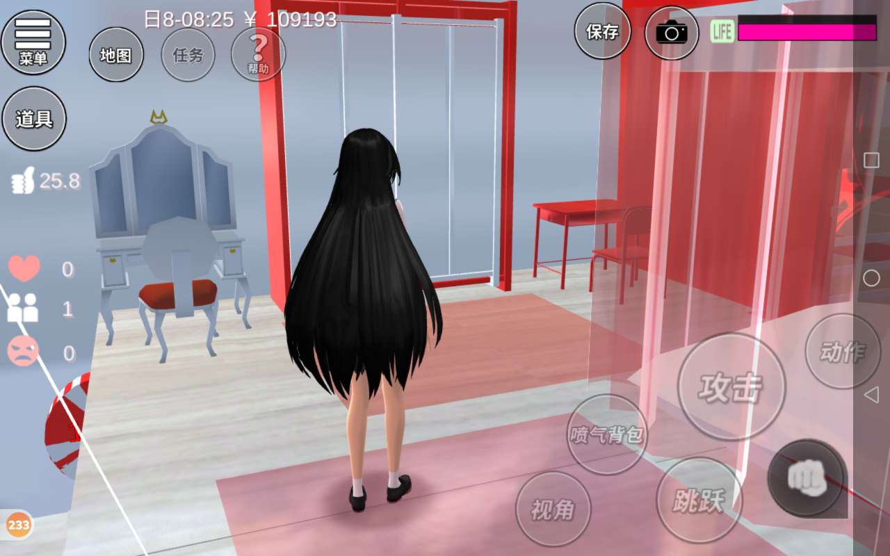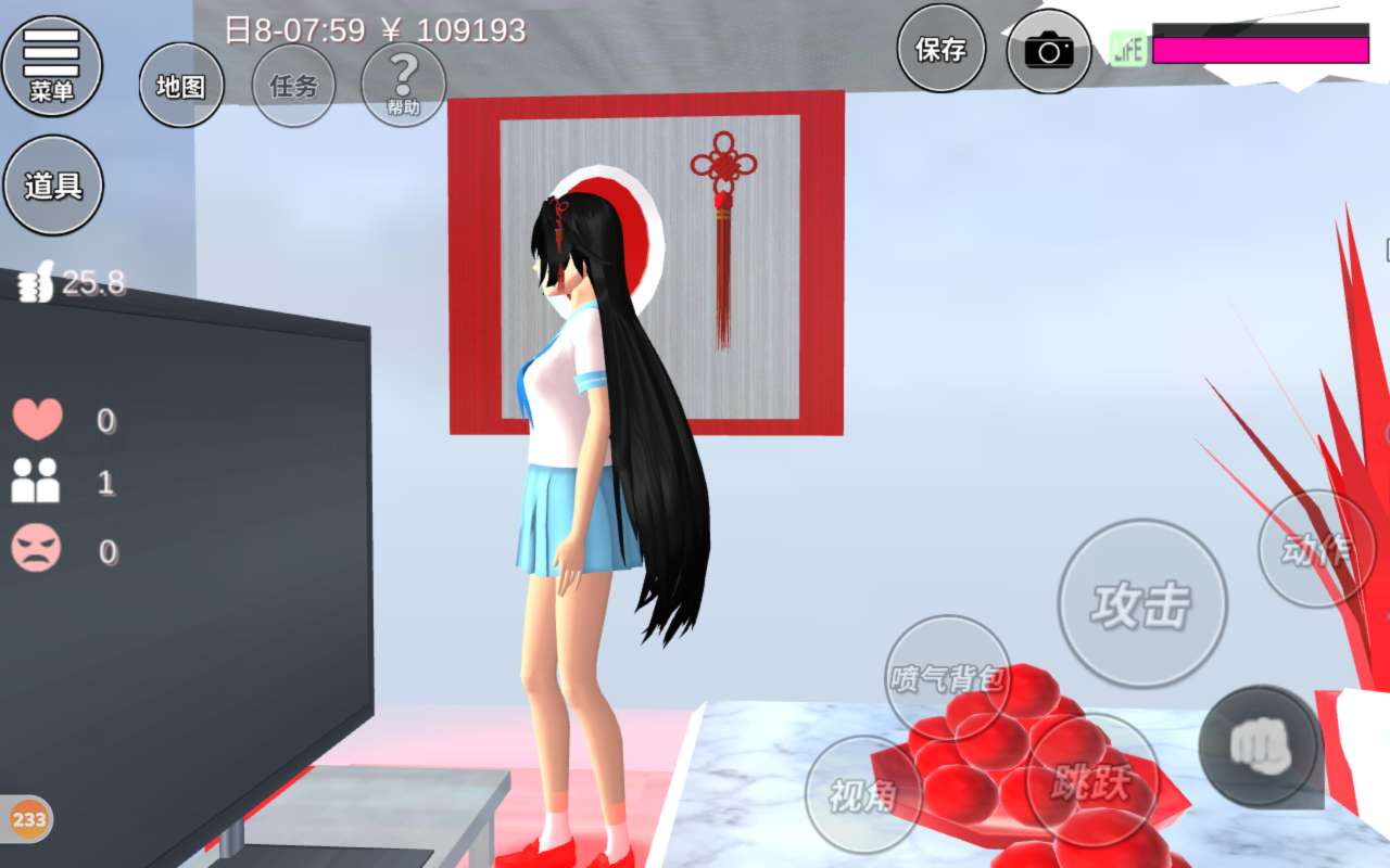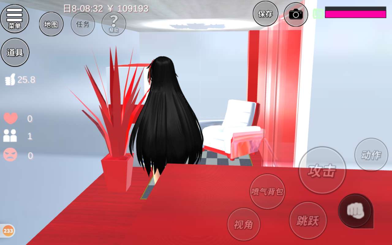 一进来就是一个泳池,泳池的海洋球是红白色的,非常喜庆,这边是一个小花园,小花园有两个雪人,还有一棵白色的圣诞树,一个人可以在这儿寂寞寂寞,还有两棵红色的树,颜色是红色的,非常喜庆