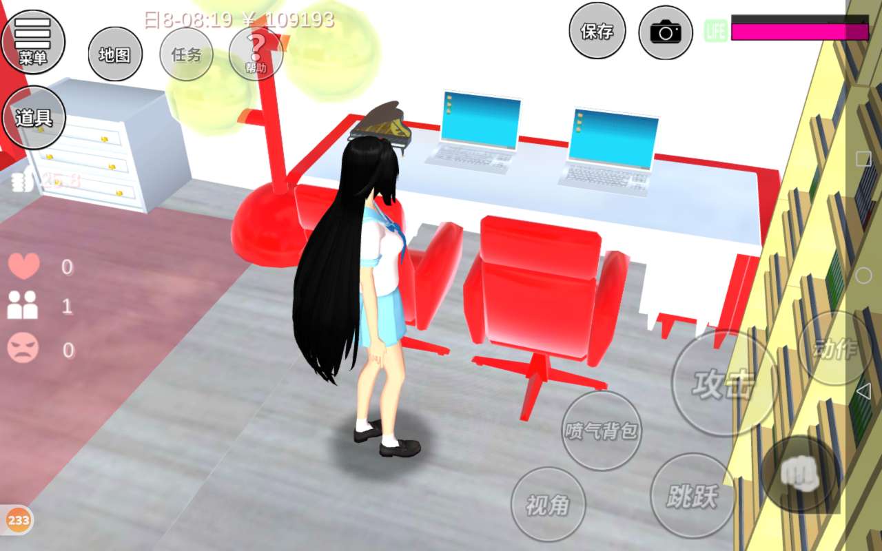 爬上楼就是我最心爱的卧室,卧室上来有很多书,这些书够我读一辈子了,墙上有雪花灯和空调,这个床位我也很喜欢,旁边有一个灯,很漂亮,这边有一个红白色的衣柜,和学习的地方,桌上有一个钢琴模型,我买不起真钢琴,只能买个钢琴模型这边还有一个梳妆台