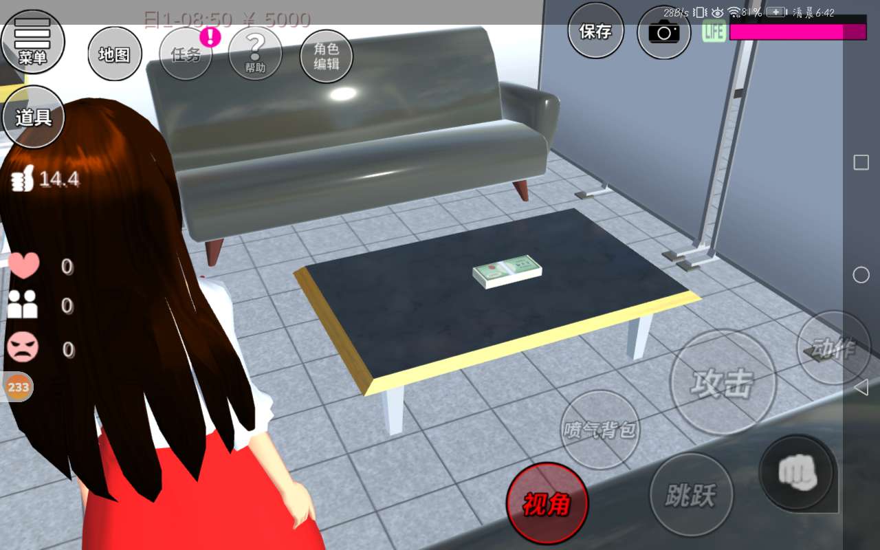 我们会发现右边的沙发和桌子上有一叠钱