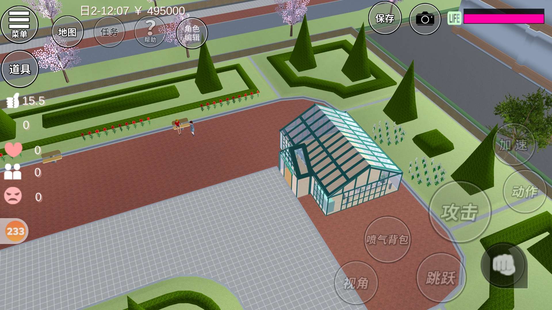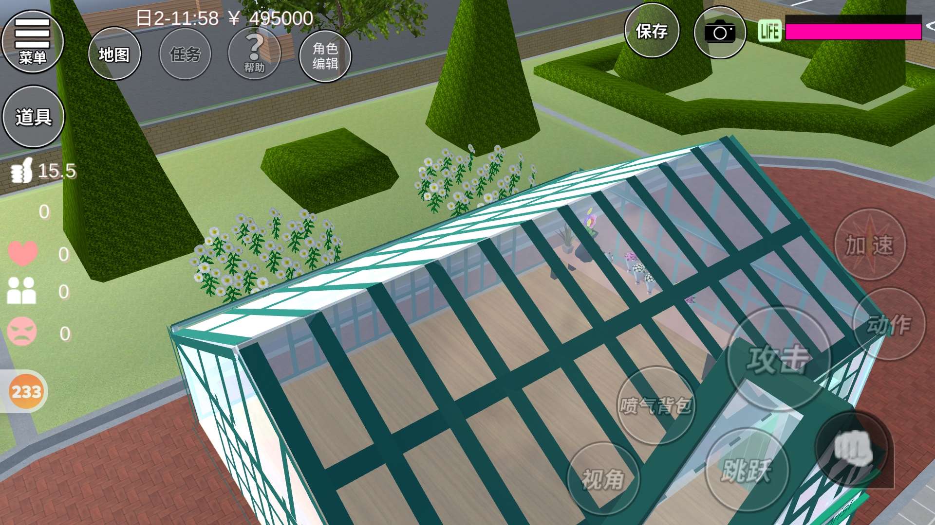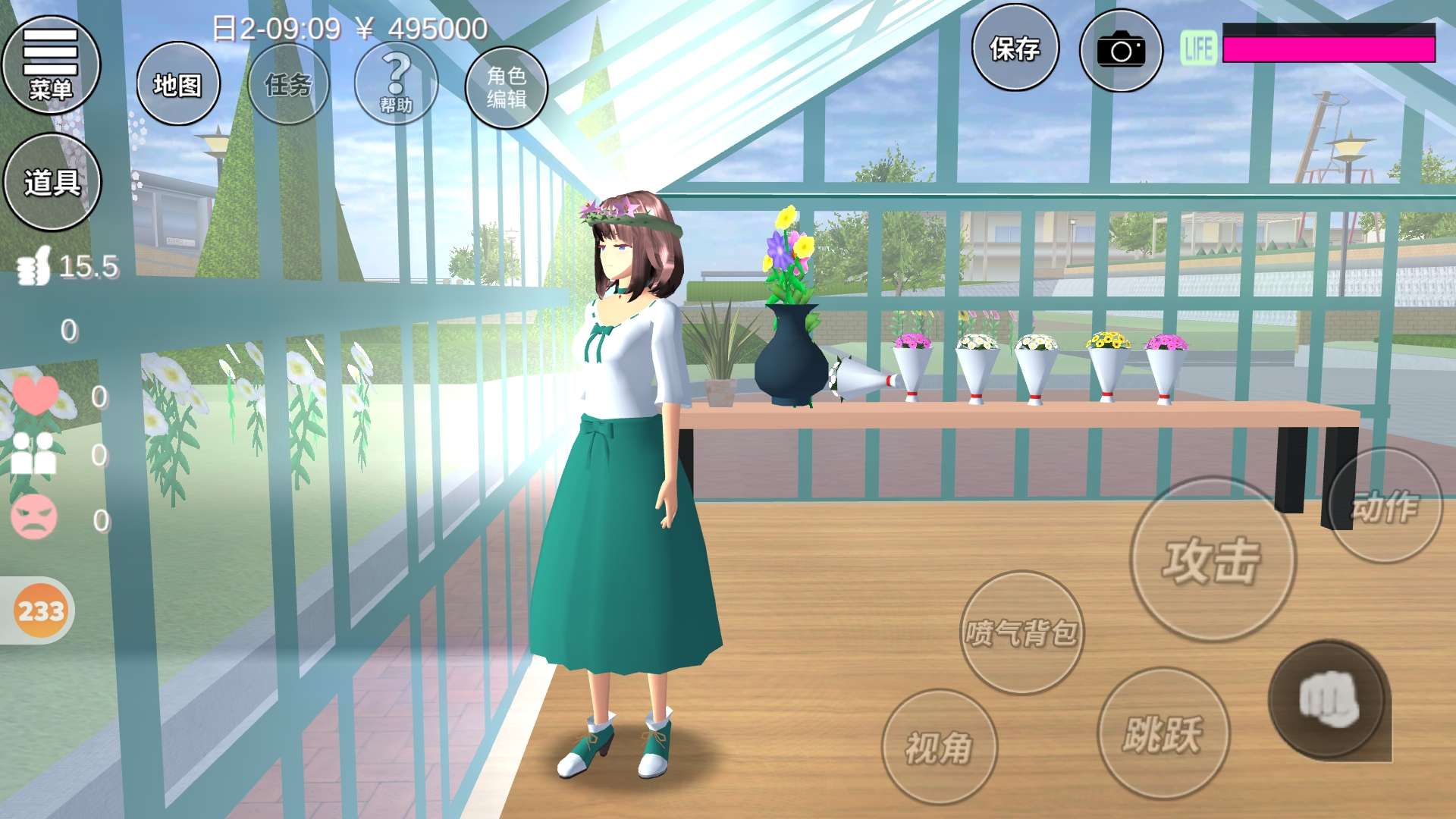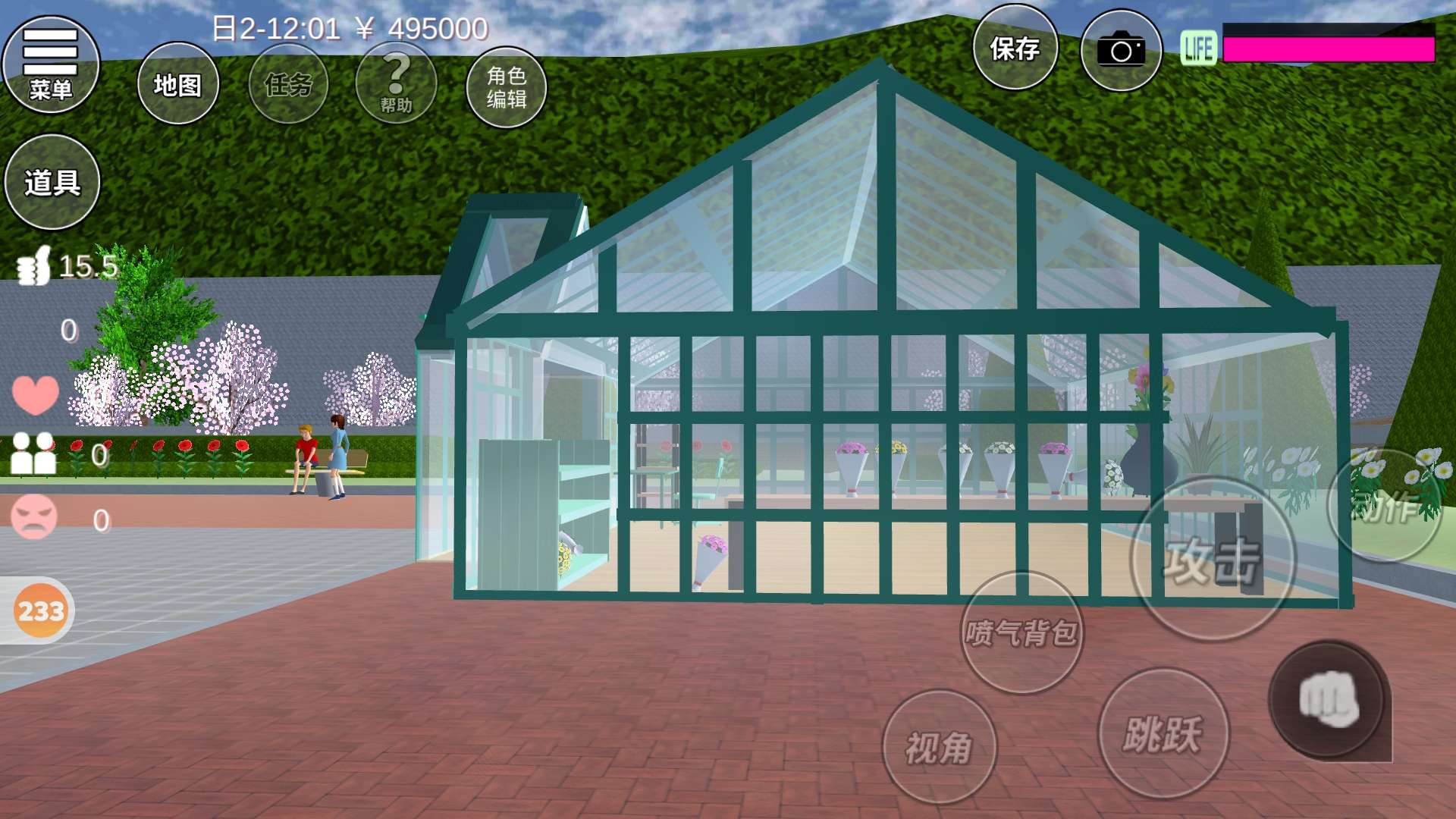 做了个花房,还有一些没装饰,樱校里花太少了,所以自己买了些花束,做了个四层架子,花架,外观还不错