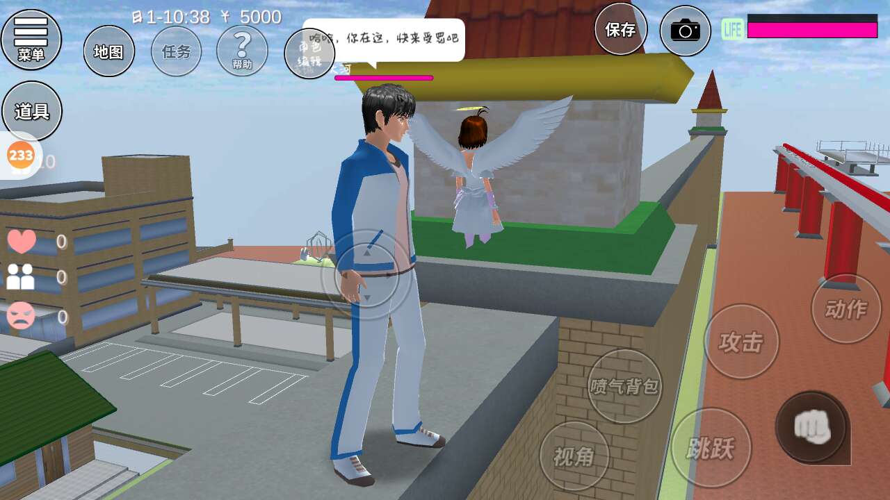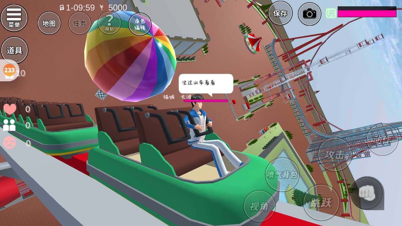 来了,先去坐一下过山车,视角比较广。可能发现她在哪里
