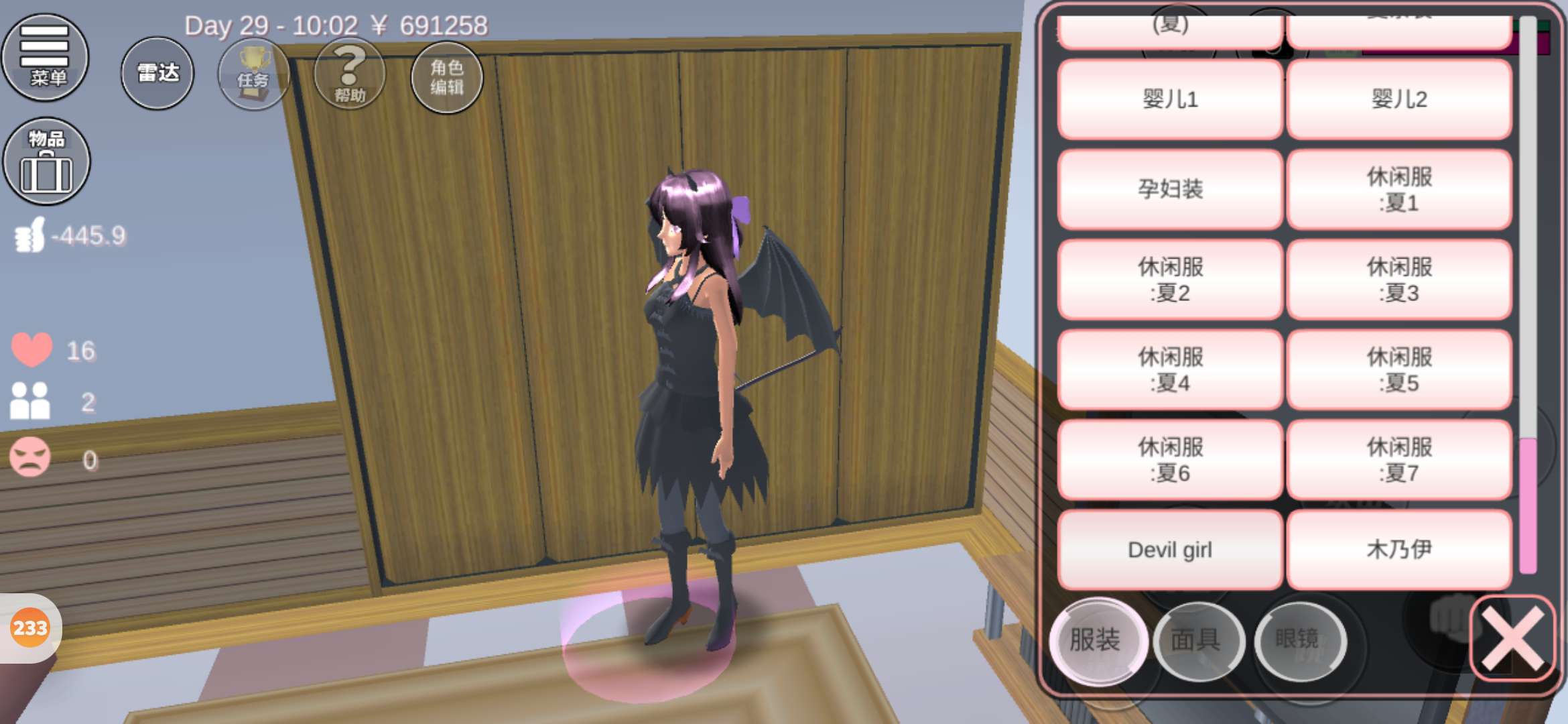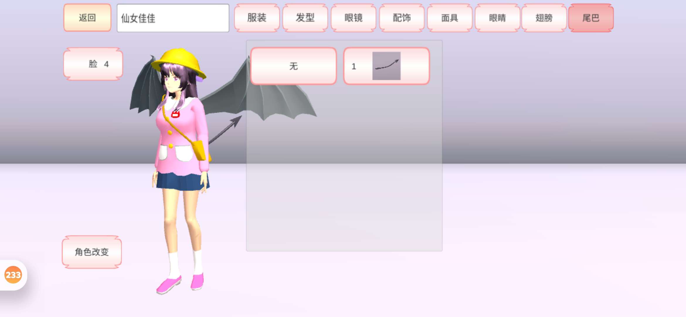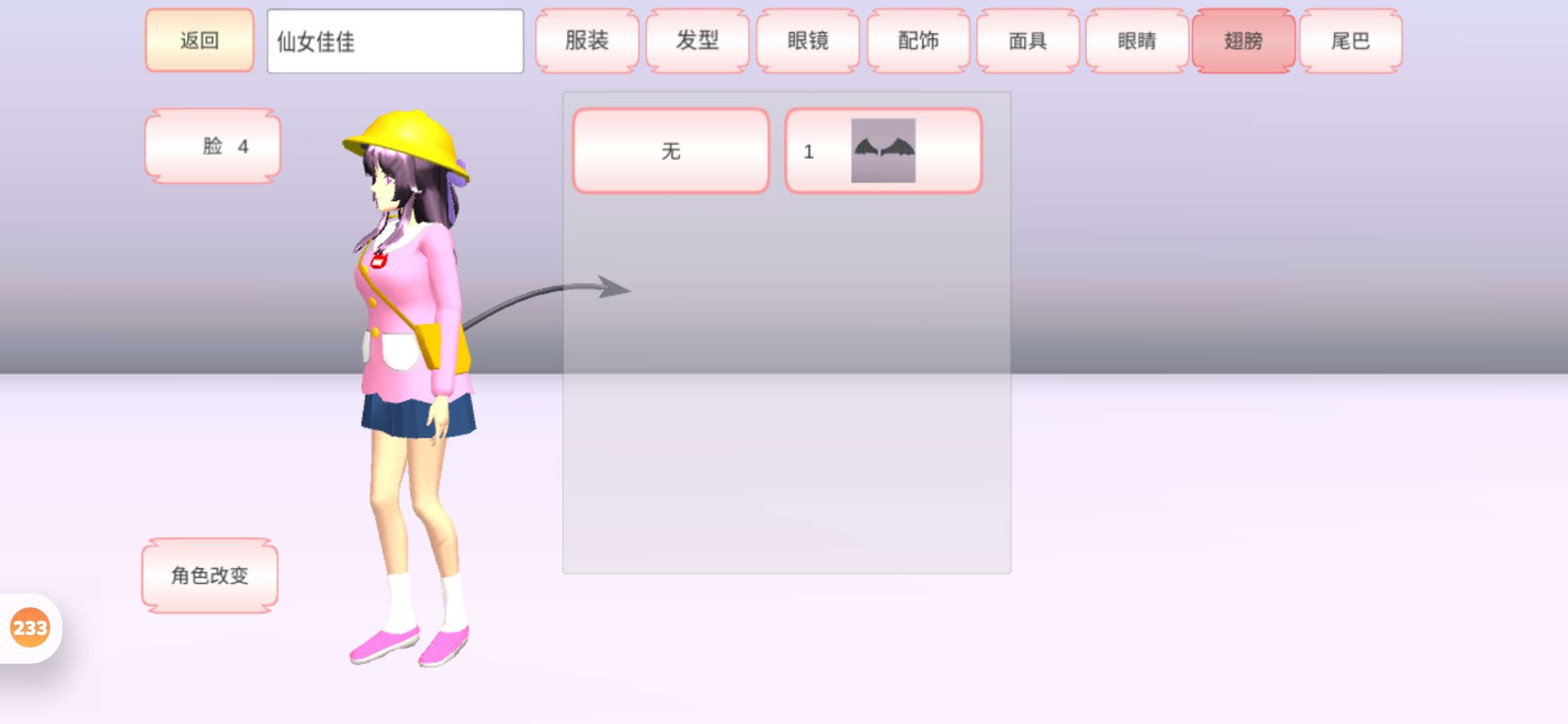 首先是服装还有眼镜配饰面具多了东西 还添加了两个翅膀还有尾巴 ,