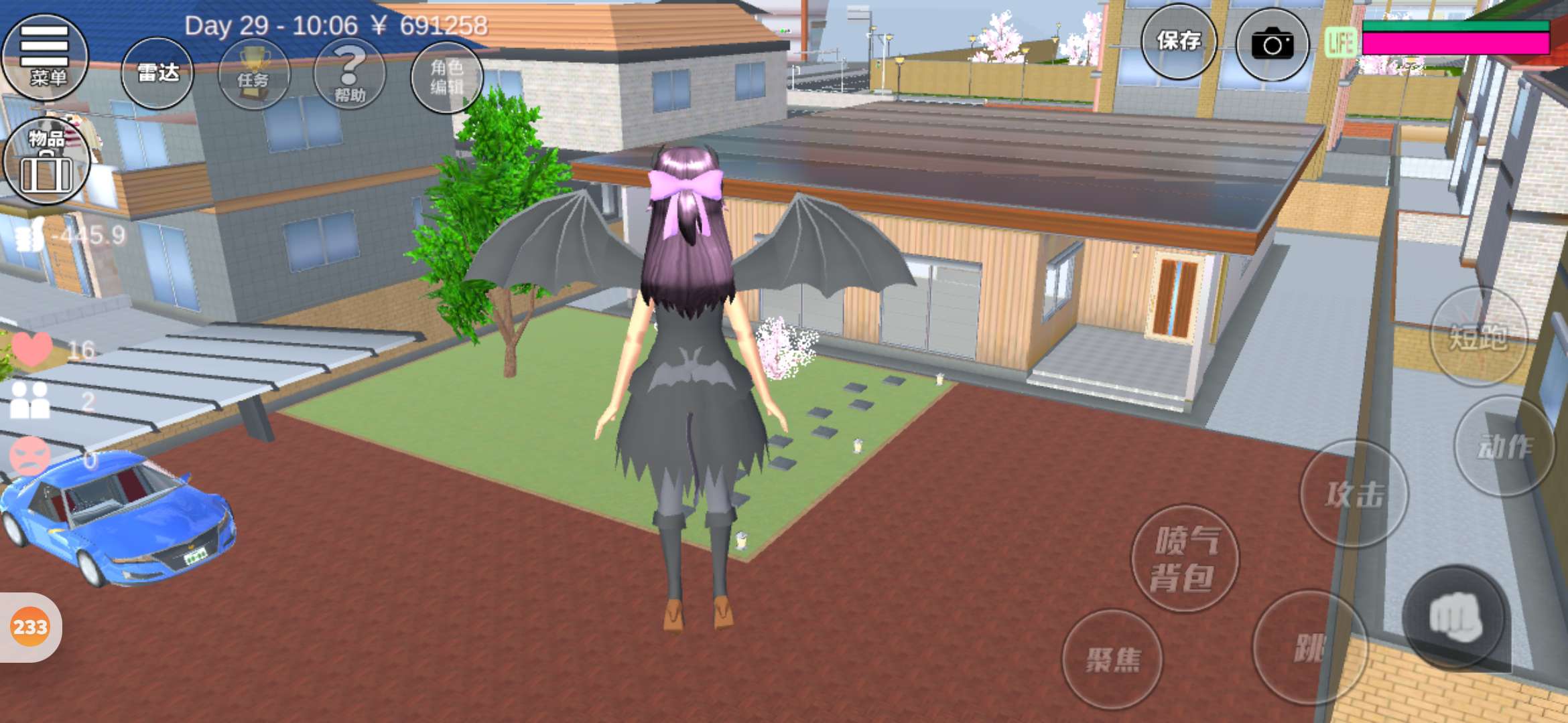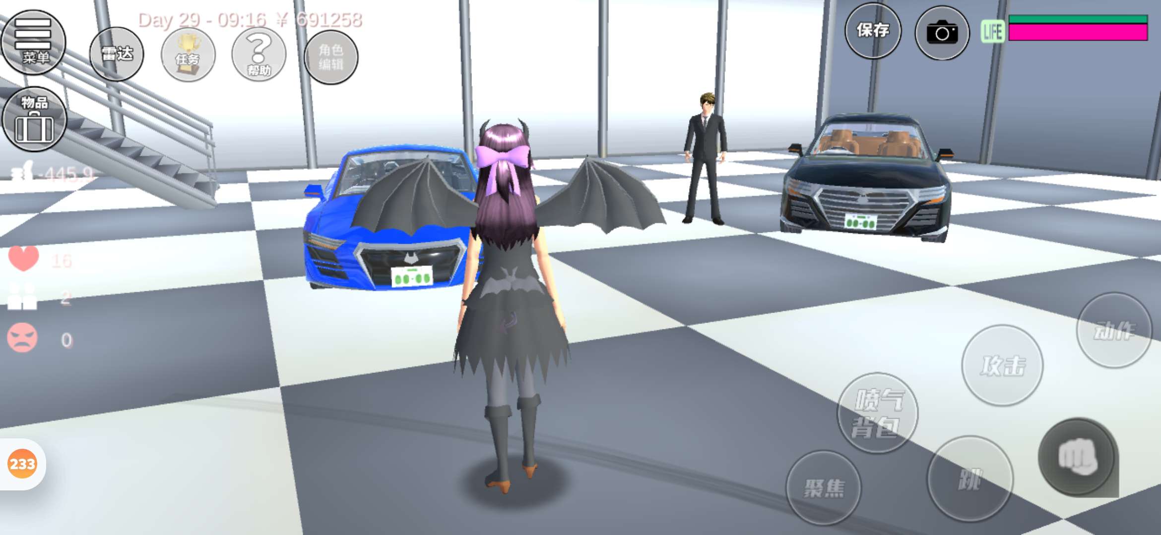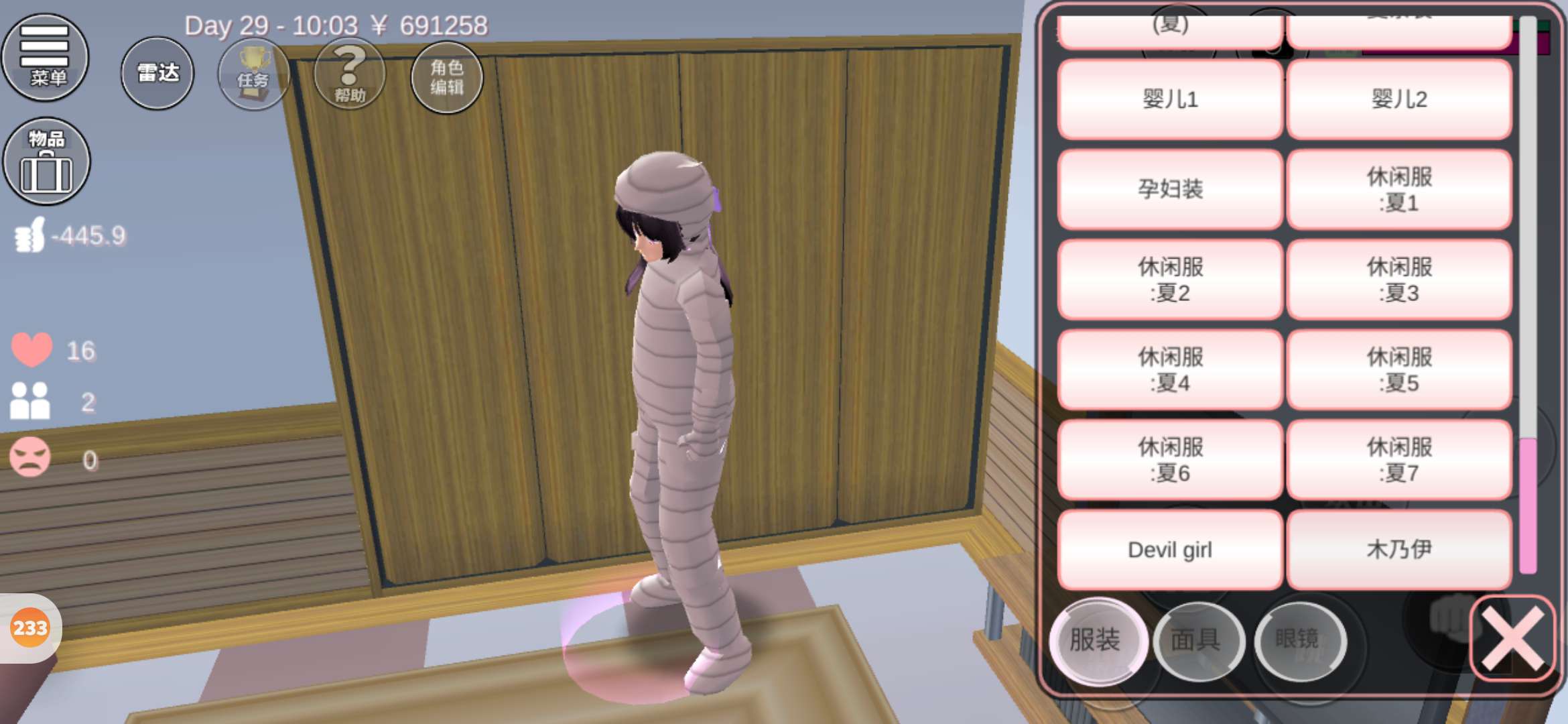 首先是服装还有眼镜配饰面具多了东西 还添加了两个翅膀还有尾巴 ,