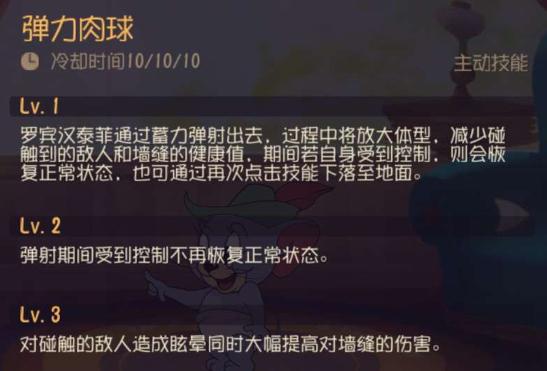 解析:弹力肉球是很考验玩家对技能释放的时机,其蓄力时间是很致命的一个点。运用的好殴打猫猫大军,运用不好惨遭汤姆殴打。