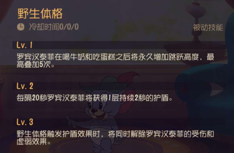解析:善于利用被动技能能为自己提供很好的属性,进游戏后不一定要急着找奶酪。走过路过吃点零食能为咱们创造更好的生存环境!一定要利用好这个被动,太强了!