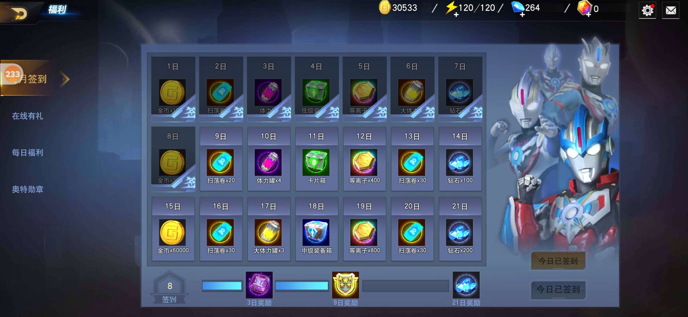 奖励领取不了看见下面没有。都签到8天了,连三天奖励都领不了