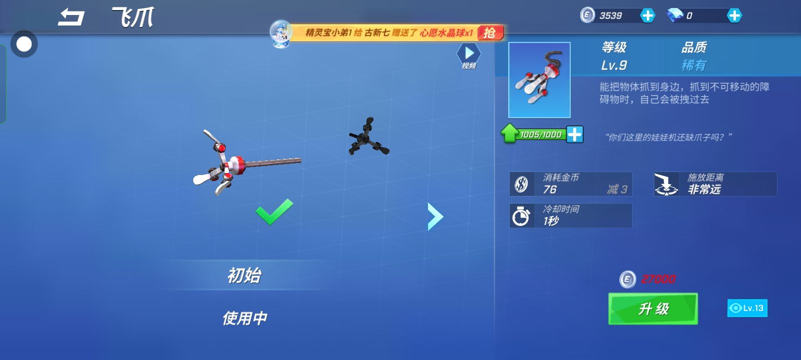 关于我可以升十级飞爪却没有白金币这件事