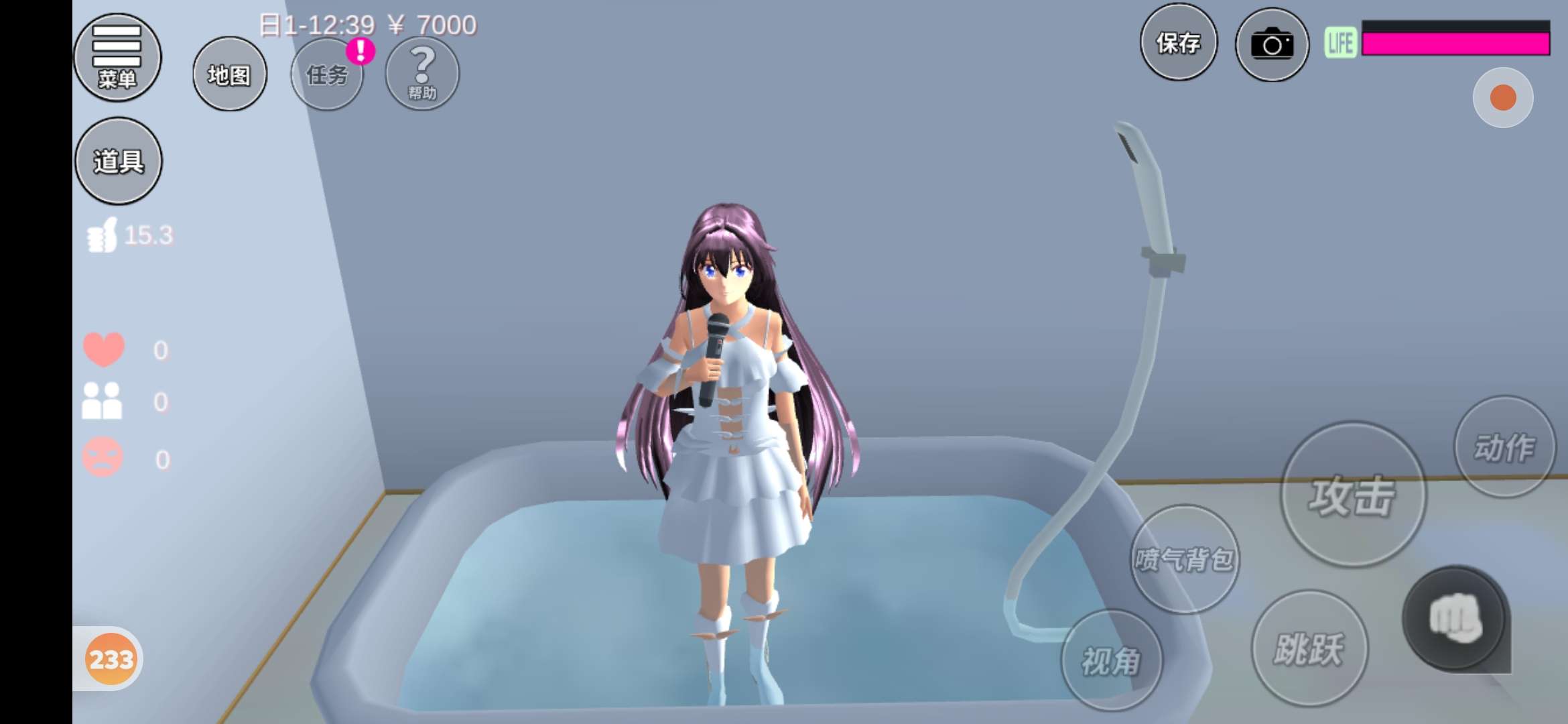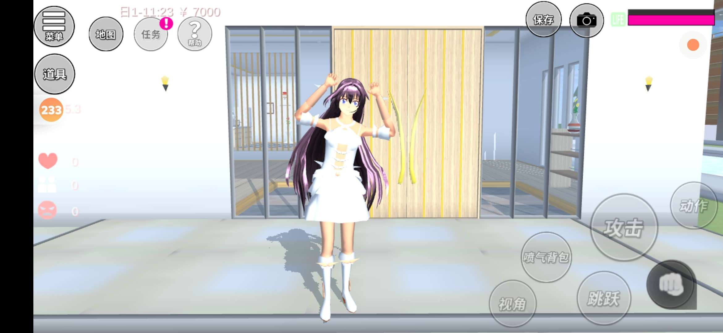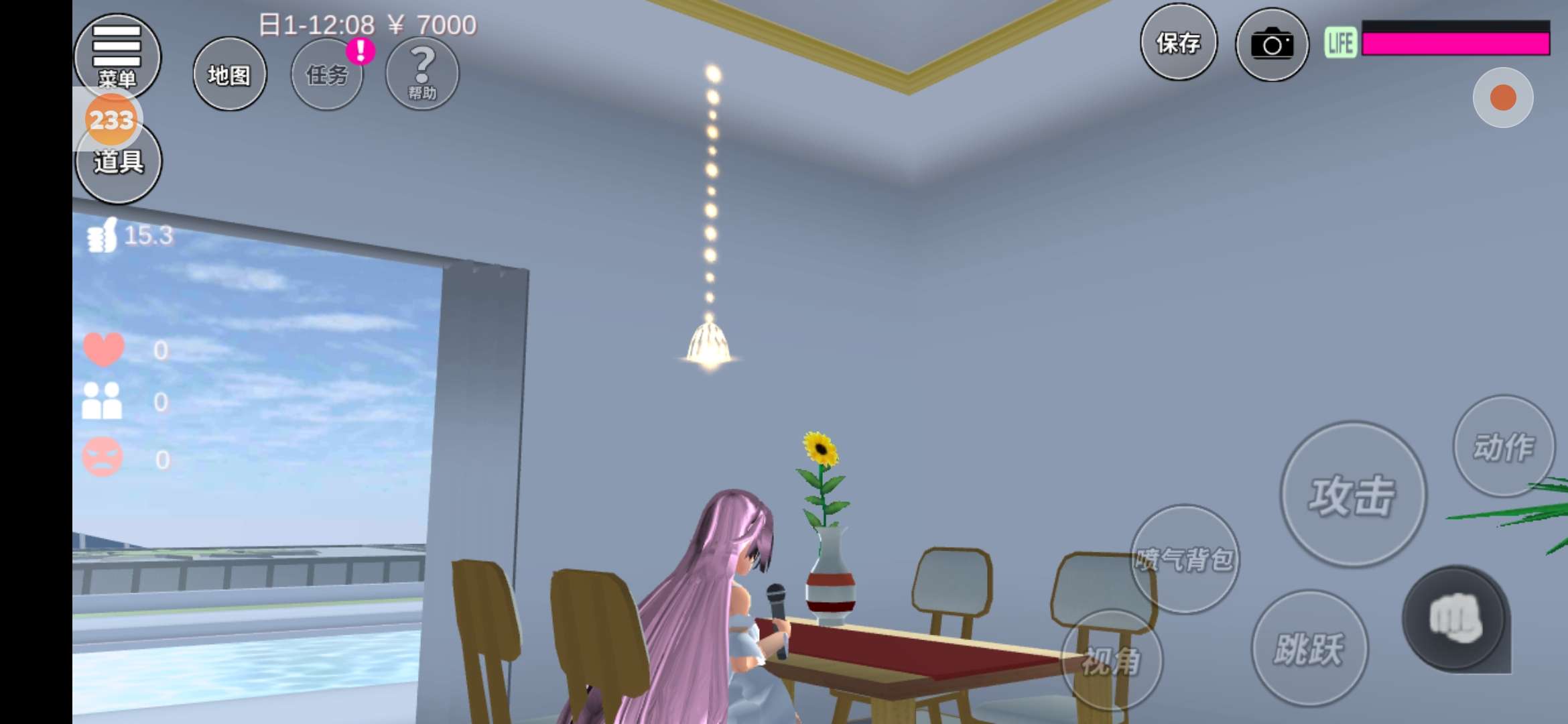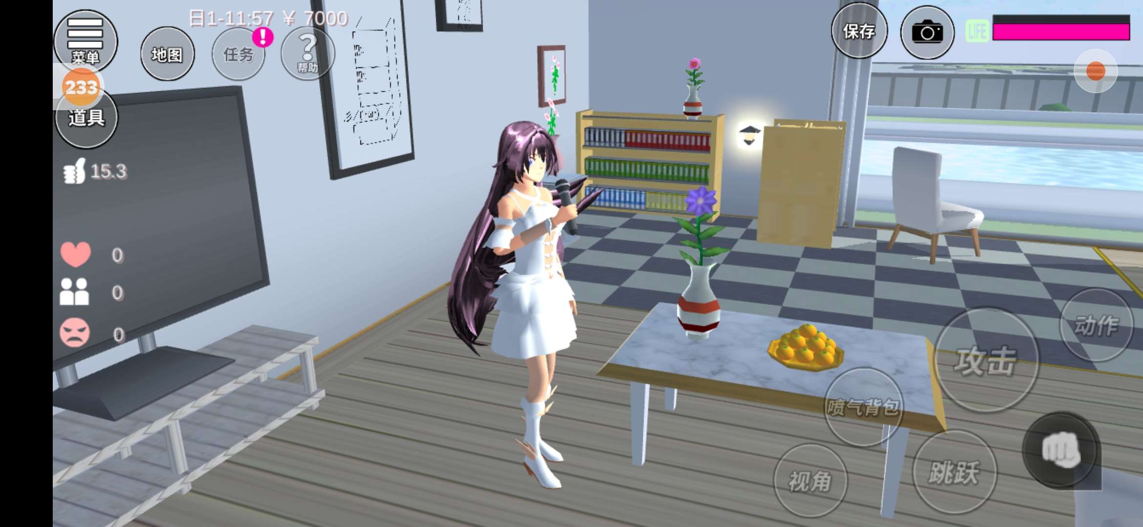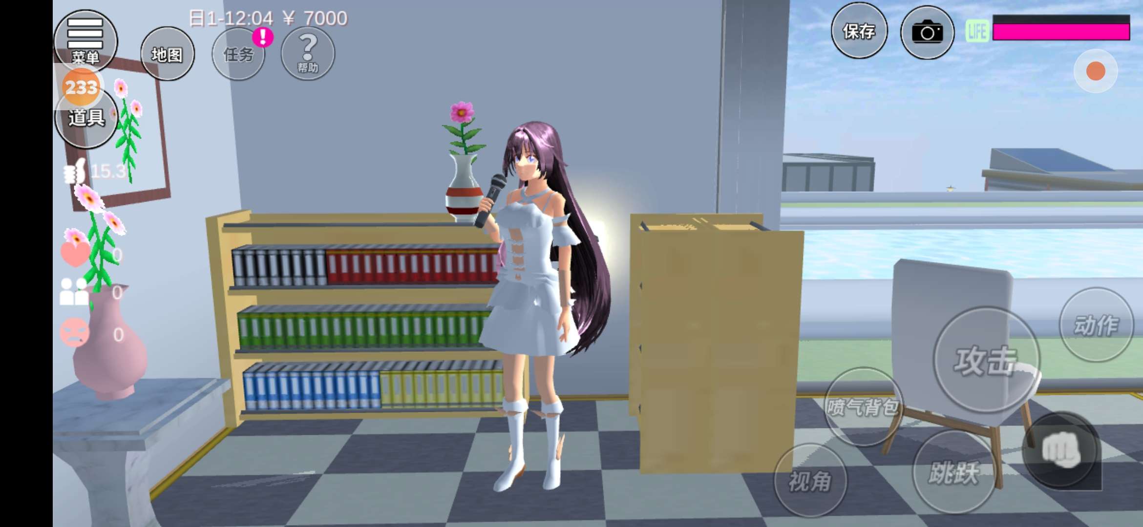 在我这边是个小柜子,柜子的旁边有棵树,柜子上面有瓶花,还有一个小雪人(这里有一些太啰嗦了,不想看的可以直接跳过)