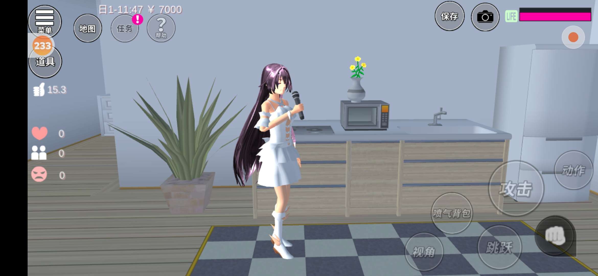 继续往里走,可以看见,这里是厨房部分了,微波炉上居然还有瓶花?我的天,这个作者真的是(`Δ´)!