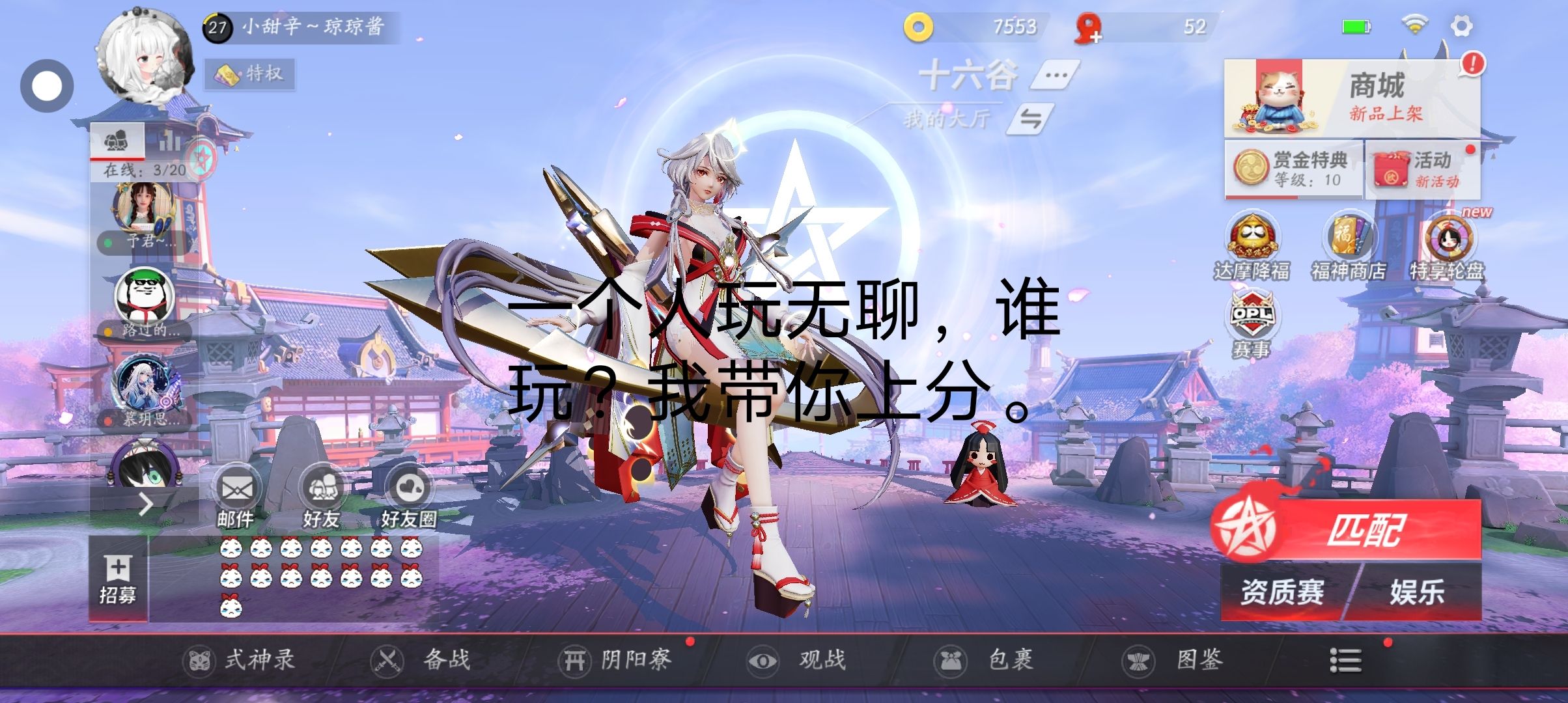 这个游戏谁玩?我带你上分。名字叫决战平安京。