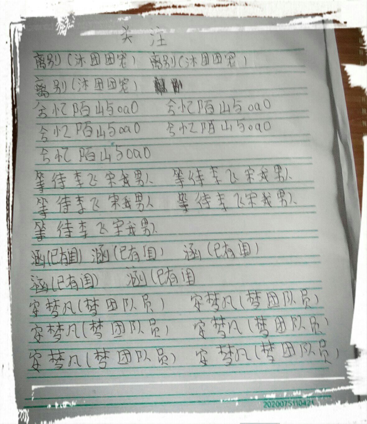 只要谁给我点了关注,我就抄她名字5遍
